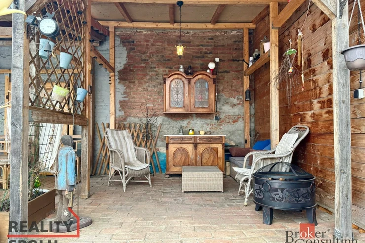 Na zahradě najdete dvě pergoly, udírnu, skleník a vyvýšené záhony – ideální prostor pro odpočinek i zahradničení.