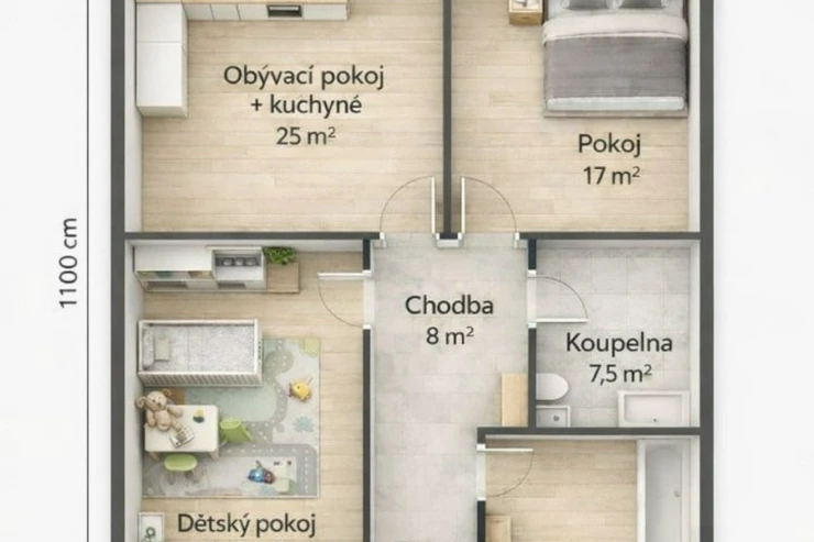V ceně je kompletně vše, včetně přípojek na kanalizaci, vodovod a elektřinu. Součástí není jen kuchyňská linka, svítidla a interiérové dveře (možno zajistit po domluvě).