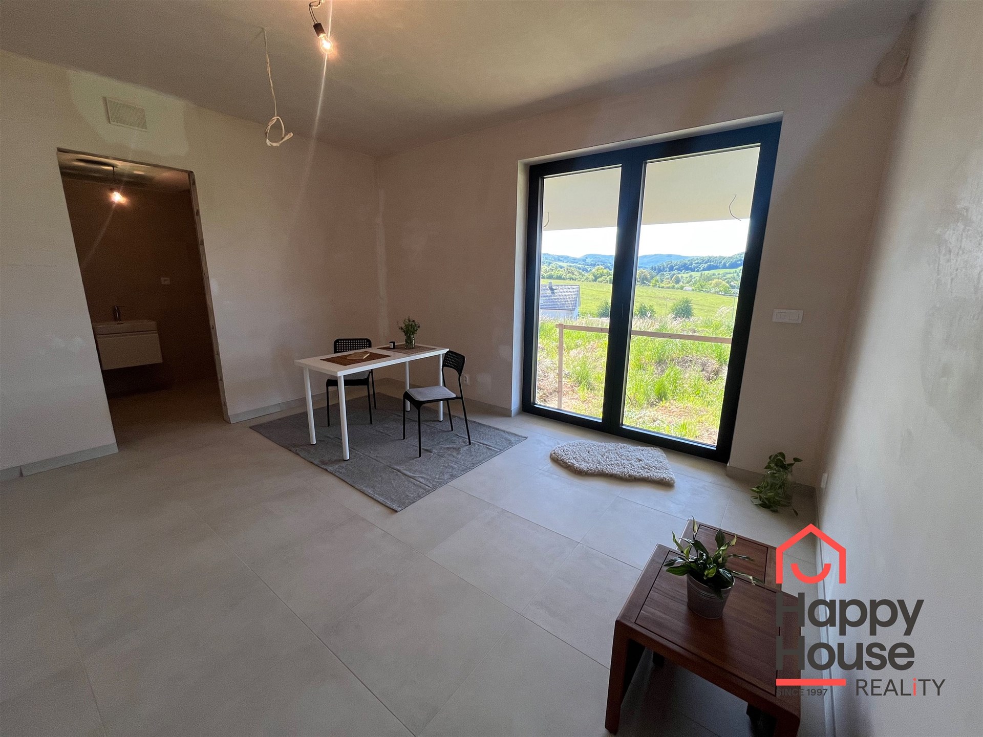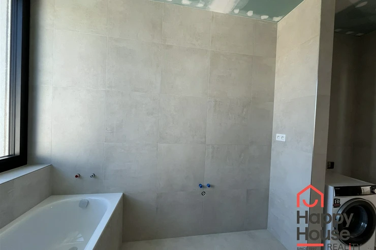 The first floor includes a spacious double garage with preparations for a Wallbox charging station, a utility room, and storage. A significant added value is a separate living unit that can serve as a guest room or fully sufficient multigenerational living facility. This room has its own bathroom and preparations for installing a small kitchenette. A great benefit of the bathroom is the space for a sauna. A covered terrace measuring 23 sqm is ideal for relaxation during hot summer days. Both windows are protected by external blinds.
