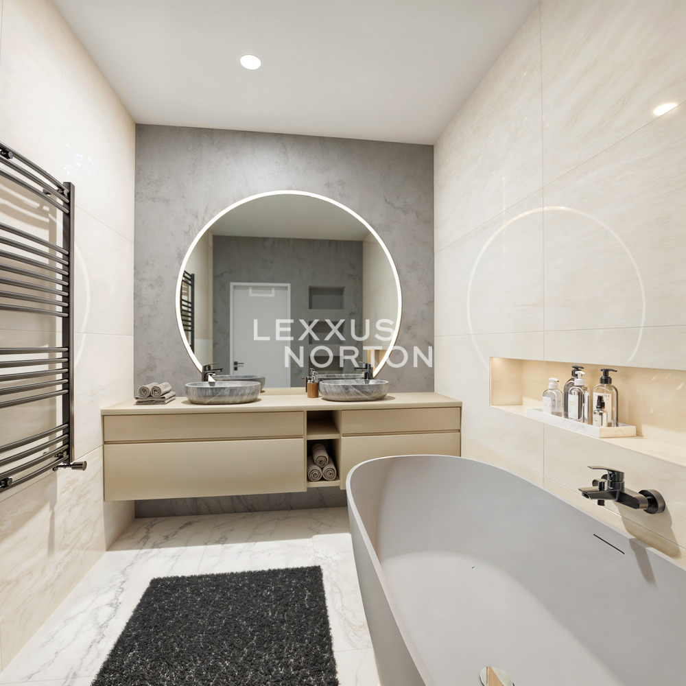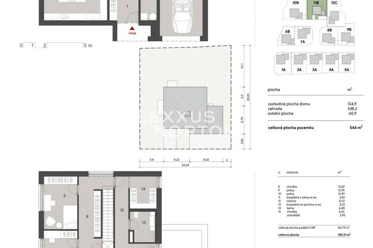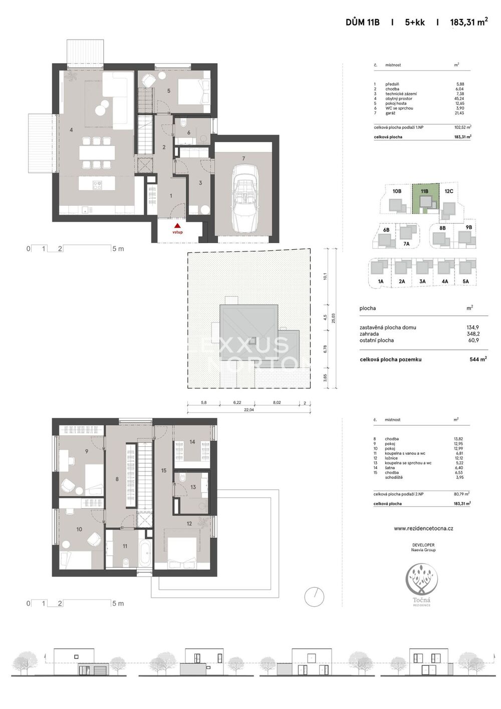 We present a newly built two-storey family house within a new residential project in the sought-after location of Prague 4 – Tocna. The complex includes only twelve detached houses located in a quiet, green area. The Tocna Residence combines privacy, thoughtful architecture, and a close connection to nature, creating a balanced environment for relaxed family living.The 4-bedroom house offers a total usable floor area of 183 sqm spread over two floors. The ground floor features an entrance hall with technical facilities and access to the garage, followed by a generous living room with a kitchen and dining area measuring 45 sqm. Large aluminum windows on two sides provide plenty of natural light and allow direct access to the terraces and north-facing garden. This level also includes a separate room with a bathroom, suitable as a study or guest bedroom.The upper floor comprises the master bedroom with a walk-in closet and private bathroom, two additional bedrooms, a spacious family bathroom, and plenty of storage space.Comfort is ensured by an air-to-water heat pump, underfloor heating, and a heat recovery ventilation system. Standard features include aluminum triple-glazed windows, wooden floors, high-quality bathroom fittings, external blinds, preparation for photovoltaic installation, and an electric vehicle charging point in the garage. The house achieves Energy Class A.The location offers exceptional tranquility, greenery, and quick access to Prague’s city center. The project also contributes to the development of local amenities, including a planned community center and self-service grocery store. Nearby you will find the renowned Prague British International School.