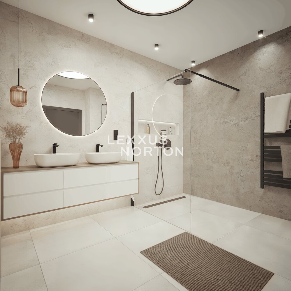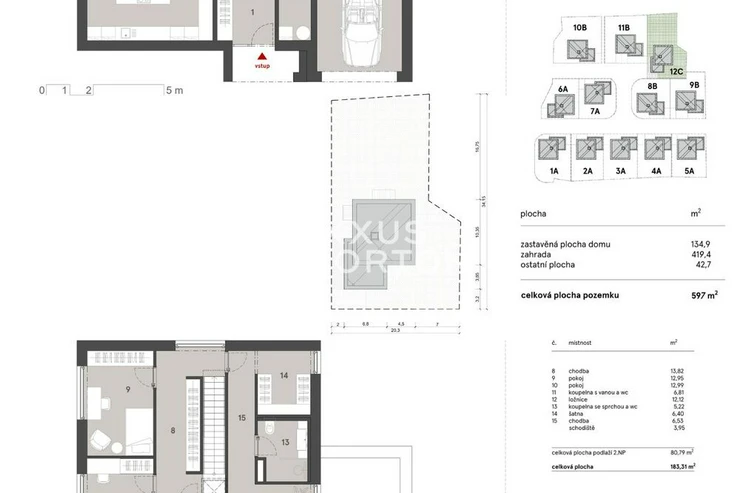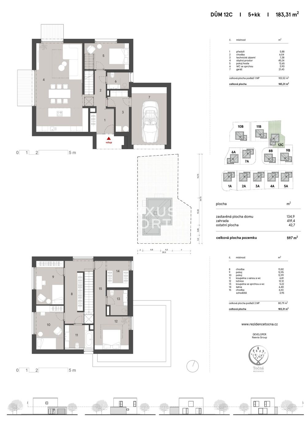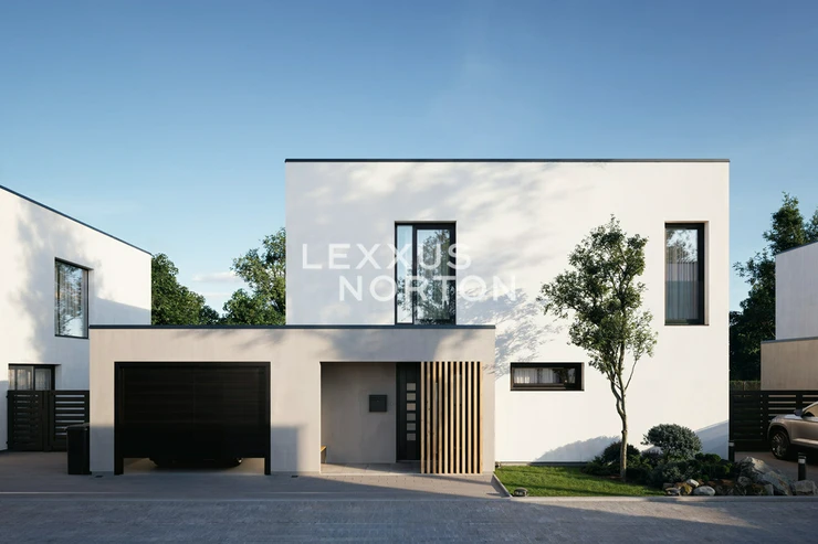 We offer for sale a modern two-storey family house within a new residential project in the prestigious area of Prague 4 – Tocna. The project consists of only twelve homes located in a quiet neighborhood surrounded by nature. The Tocna Residence combines privacy, high-quality architectural design, and a pleasant green setting, creating an ideal place for family living.The 4-bedroom layout with a usable area of 183 sqm is divided is divided into two living zones. The ground floor includes an entrance hall with a utility room connected to the garage and an open-plan living space with a kitchen and dining area of 45 sqm. Large-format aluminum windows bring in abundant daylight from two directions and connect the interior with terraces and a sunny north-facing garden. A separate room with a bathroom can be used as a study or guest room.The second floor offers a master bedroom with a walk-in closet and private bathroom, two additional bedrooms, a spacious family bathroom, and practical storage areas.Each home is equipped with an air-to-water heat pump, underfloor heating, and heat recovery ventilation for a healthy indoor climate and energy-efficient operation. Standard features include aluminum triple glazing, wooden floors, bathroom furniture, external blinds, preparation for photovoltaic panels, and an electric vehicle charging socket. The property meets Energy Class A energy efficiency.Tocna stands out for its peaceful atmosphere and abundant greenery while maintaining quick access to the city center. The project also supports the development of local infrastructure, including a community center for gatherings and shops for everyday needs. Nearby is one of the most respected international schools, Prague British International School.
