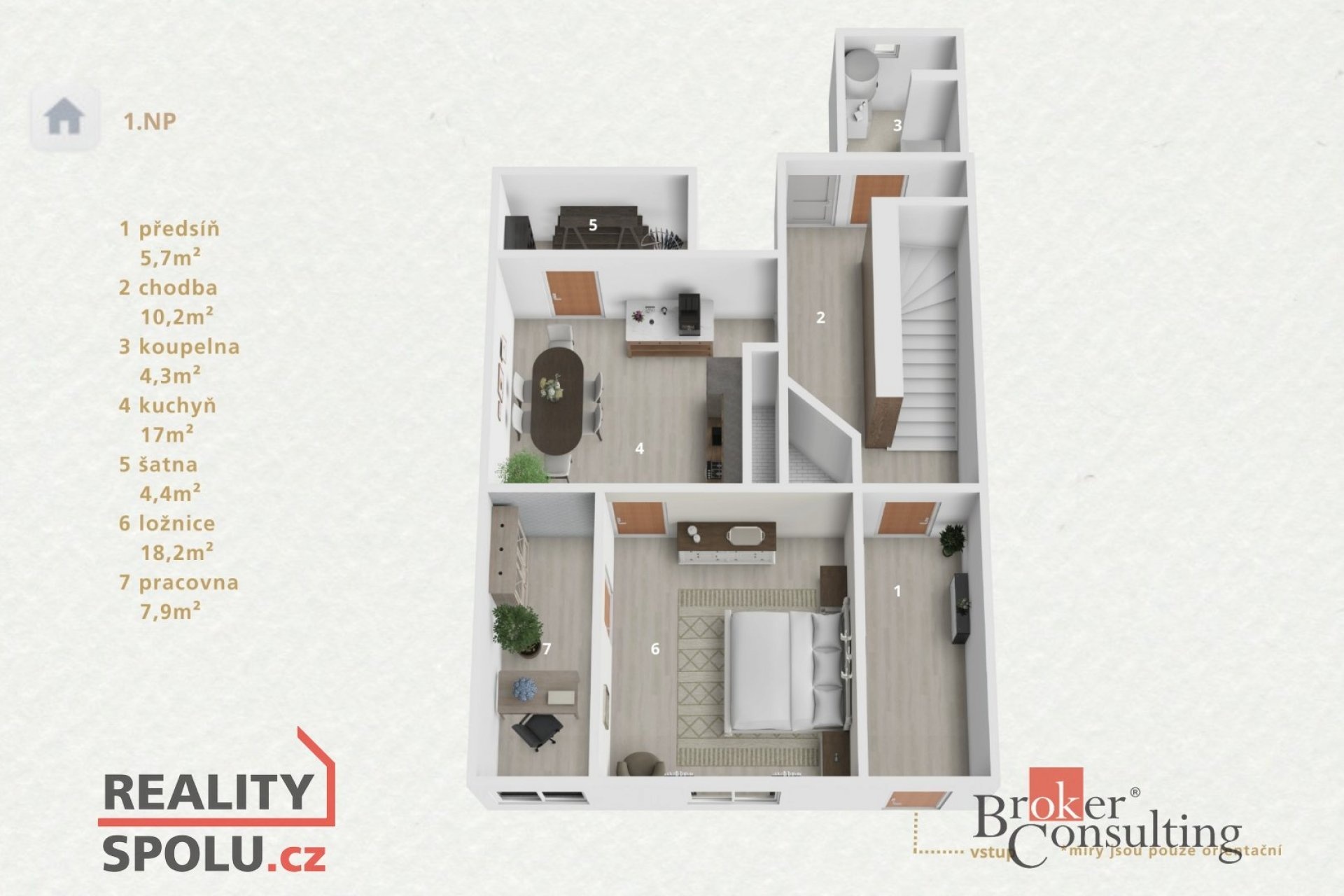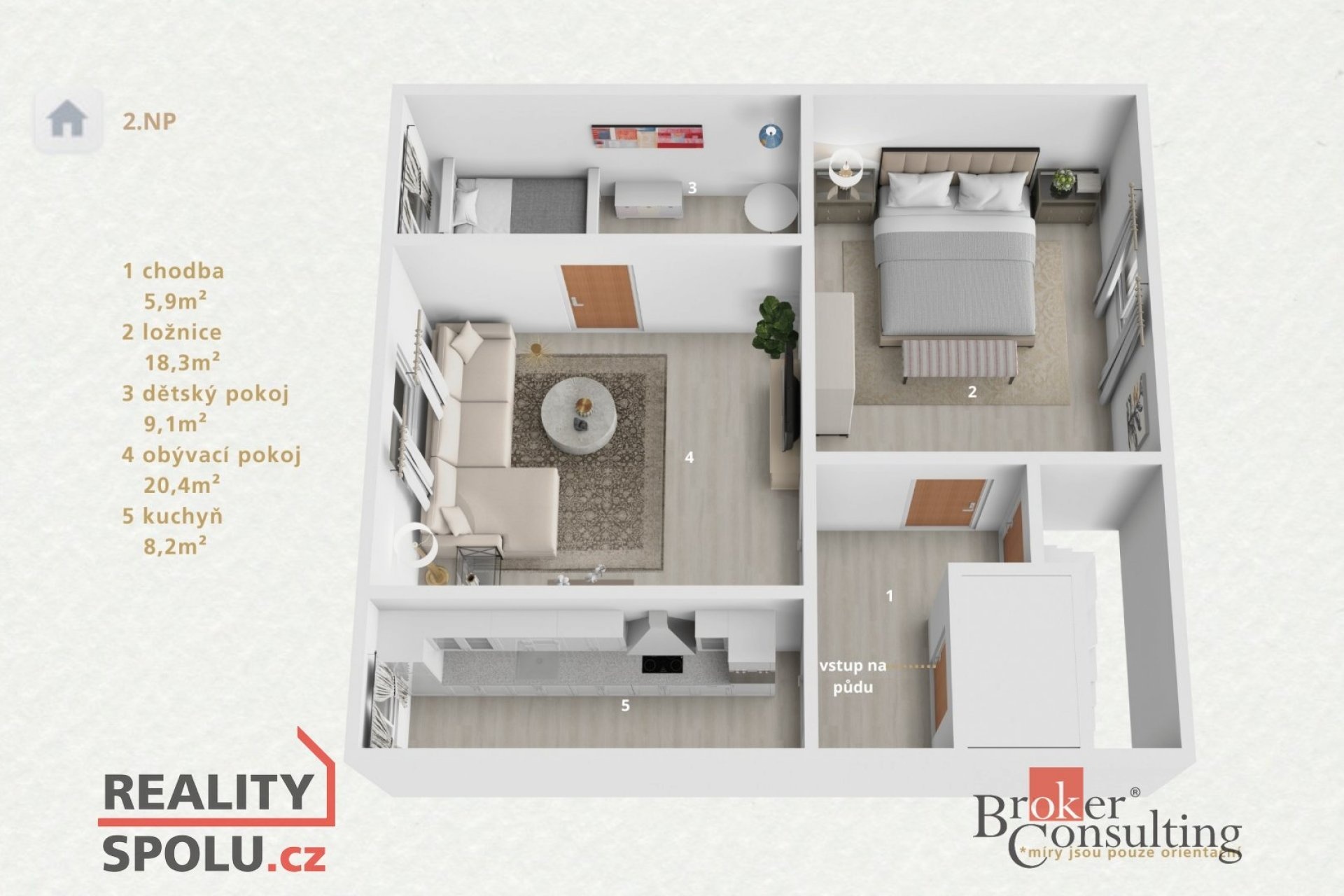 - 2 podlaží + půda – ideální pro rodinu, dvougenerační bydlení nebo kombinaci bydlení a podnikání