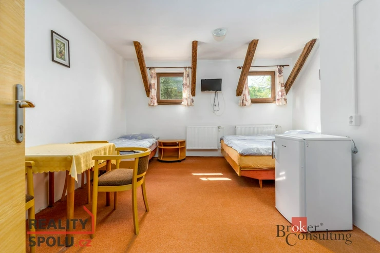 Nabízíme k prodeji výjimečně prostorný dům v malebném horském městečku Horní Maršov – místě, kde se snoubí klid, příroda a celoroční turistický ruch. Na první pohled působí jako rodinný dům s velkorysým zázemím. Při bližším pohledu ale zjistíte, že nabízí mnohem víc. Může se stát skutečně komfortním vícegeneračním bydlením, chalupou pro velkou rodinu nebo chytrou investicí s možností pravidelného příjmu z ubytování. Dům má 3 nadzemní podlaží a 1 podzemní podlaží, celkovou kapacitu až 38 lůžek a prošel rozsáhlou rekonstrukcí v roce 2010 (nové rozvody topení, elektroinstalace, vody, kompletní koupelny, plastová okna a dveře, komín, terasy, úpravy pozemku a další). Kolaudace proběhla v roce 1987.