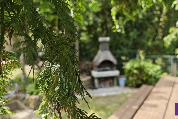 The plot includes a garage, 2 parking spaces, and a terrace with a pergola and an outdoor grill. Additional parking is available on the road in front of the house. The house is connected to the municipal sewage system and water supply network. Heating is provided by a gas boiler, and water heating is managed by a boiler and instantaneous water heaters.