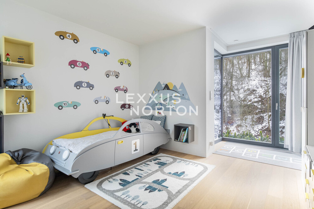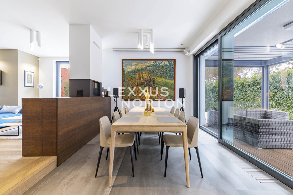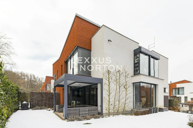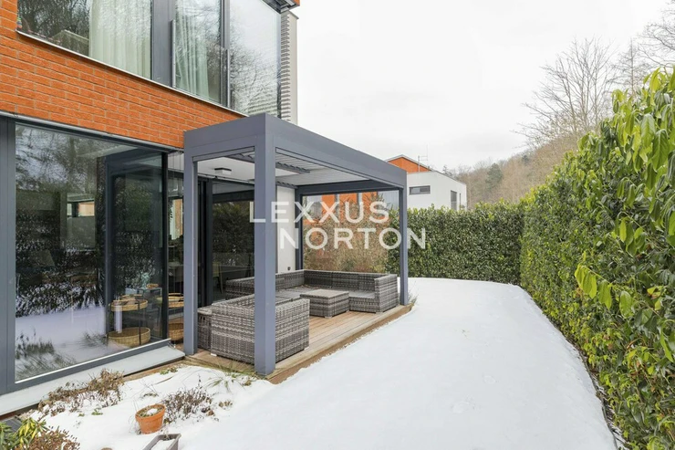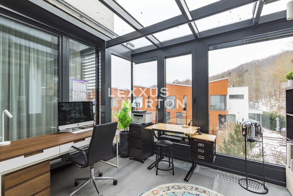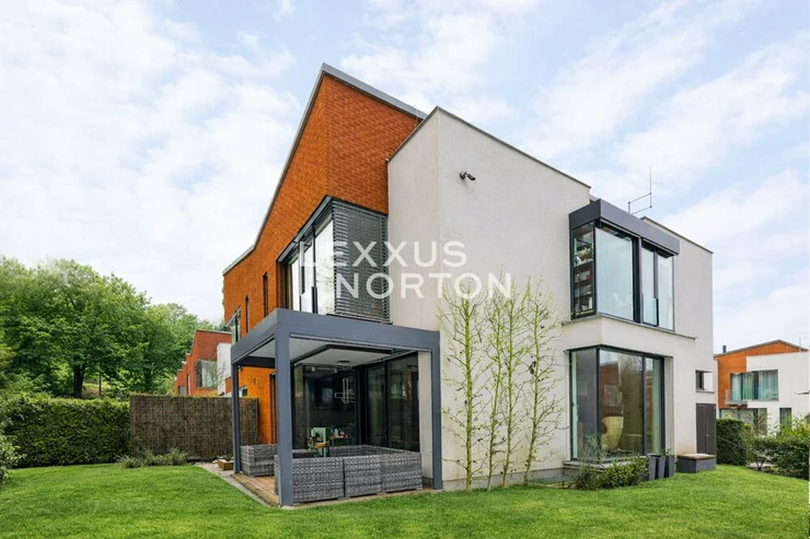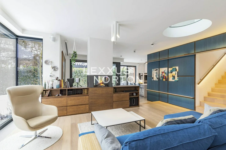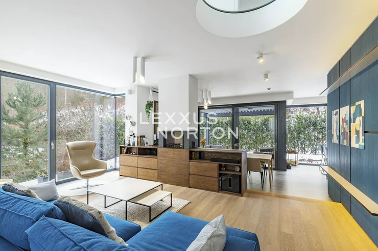 We offer you an exceptional three-story family house in a gated community in one of the most prestigious locations in Prague 6 – in Dejvice, right in the Sarecke Udoli. The villa stands on an end, south-facing plot with a professionally landscaped garden of 295.1 sqm and offers maximum privacy, peace and comfort of five-star living.The dominant feature of the house is the magnificent living space with a dining room and designer kitchen with a cooking island and Siemens appliances, complemented by a large pantry. Large windows connect the interior with the south-facing garden and a covered terrace measuring 14.17 sqm, which can be comfortably used all year round. The ground floor also offers a guest room or study and a bathroom with a shower. The entire space feels exceptionally bright, airy, and representative.Upstairs, there is a master bedroom with its own dressing room and a luxurious bathroom with a bathtub and shower, two additional bedrooms, a second bathroom, and a quiet hall ideal for relaxation. A circular skylight runs through the center of the house, bringing daylight down to the ground floor. A unique feature is the 9.21 sqm winter garden, suitable as a study, studio, or private lounge.The basement has a separate apartment with a kitchen and bathroom, with access to the garden – ideal for guests, a nanny, or multigenerational living. There is also a utility room, storage rooms, and direct access to the garage with a heated driveway and two charging stations for electric cars.This villa is the ideal choice for discerning clients looking for prestigious, secure, and truly exceptional living in a green setting, yet in close proximity to the center of Prague.The house is equipped with above-standard technologies: heat recovery, air conditioning, underfloor heating, gas condensing boiler, intelligent heating control, Lutron dimmable lighting, camera system, and security. The doors are non-rebated and tall. The floors in the house are wooden, the wooden windows have triple glazing and automatically controlled external blinds. The interior is furnished with high-quality, custom-made furniture, which can be included in the sale by agreement.This exclusive residential complex, designed by the Archicraft studio, offers a reception, 24-hour security, a private park, a pond, a children's playground, and a social club. The entire complex is set in a natural park in the immediate vicinity of Divoka and Ticha Sarka, yet with excellent access to the city center, the Bořislavka and Veleslavin metro stations, trams, and Vaclav Havel Airport (within 10 minutes). There are prestigious international schools (ISP, Riverside School) and high-quality state and private educational facilities in the vicinity.