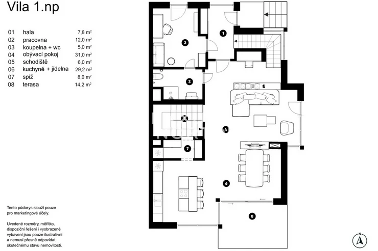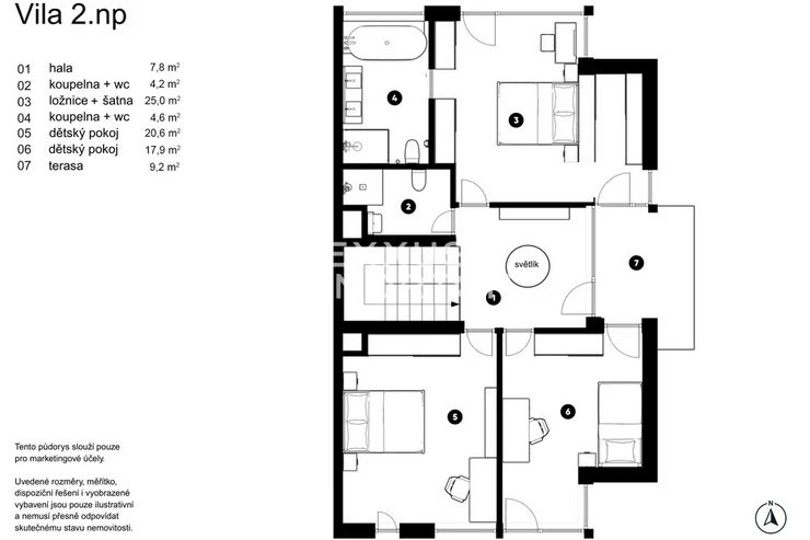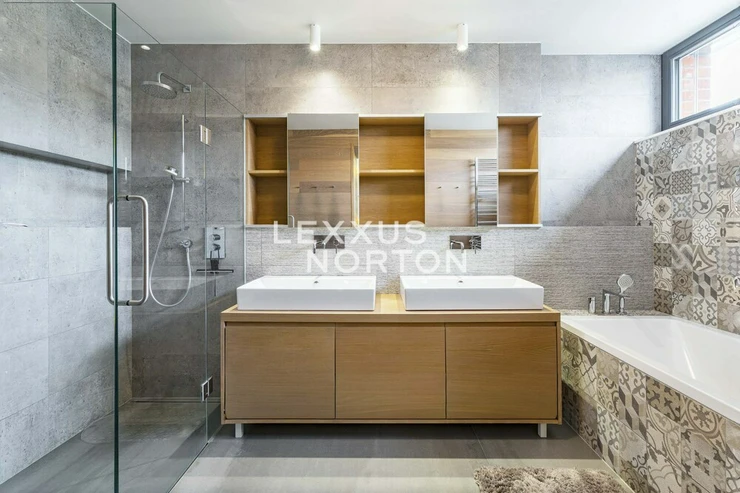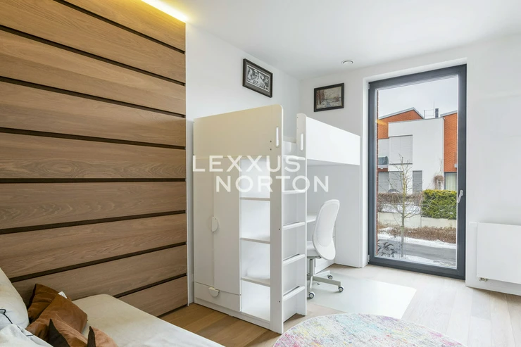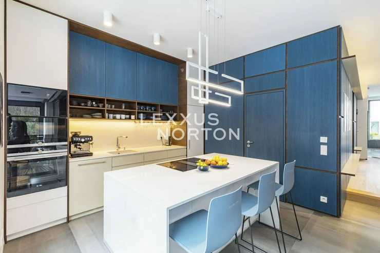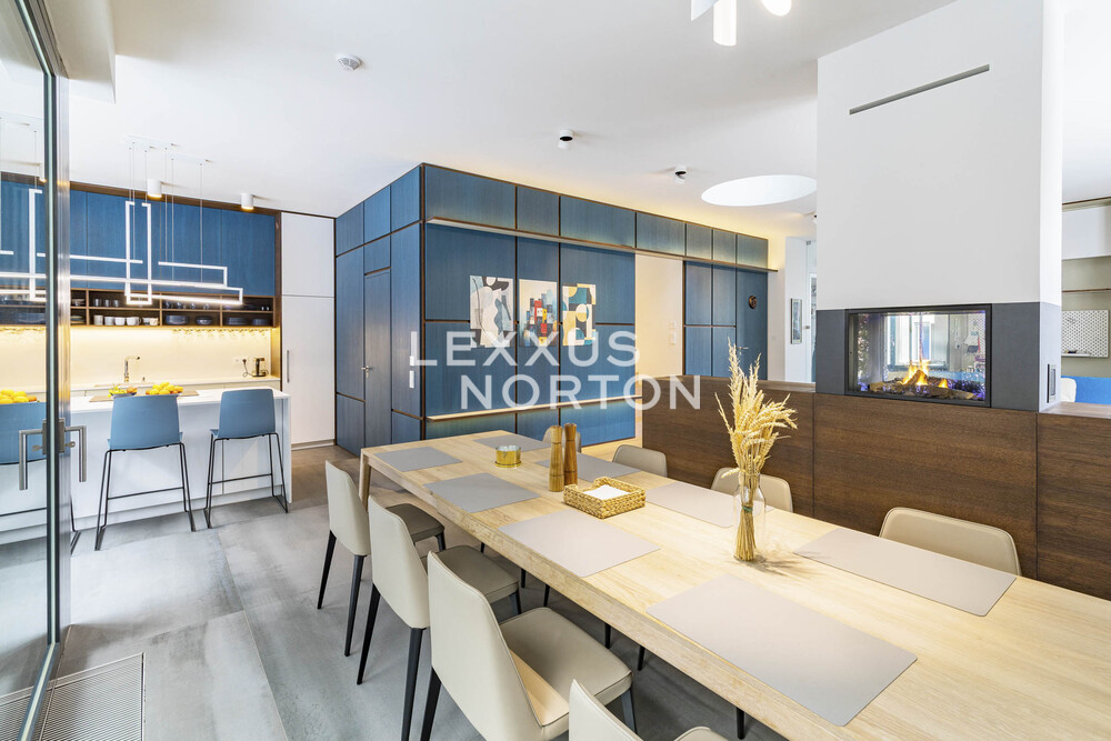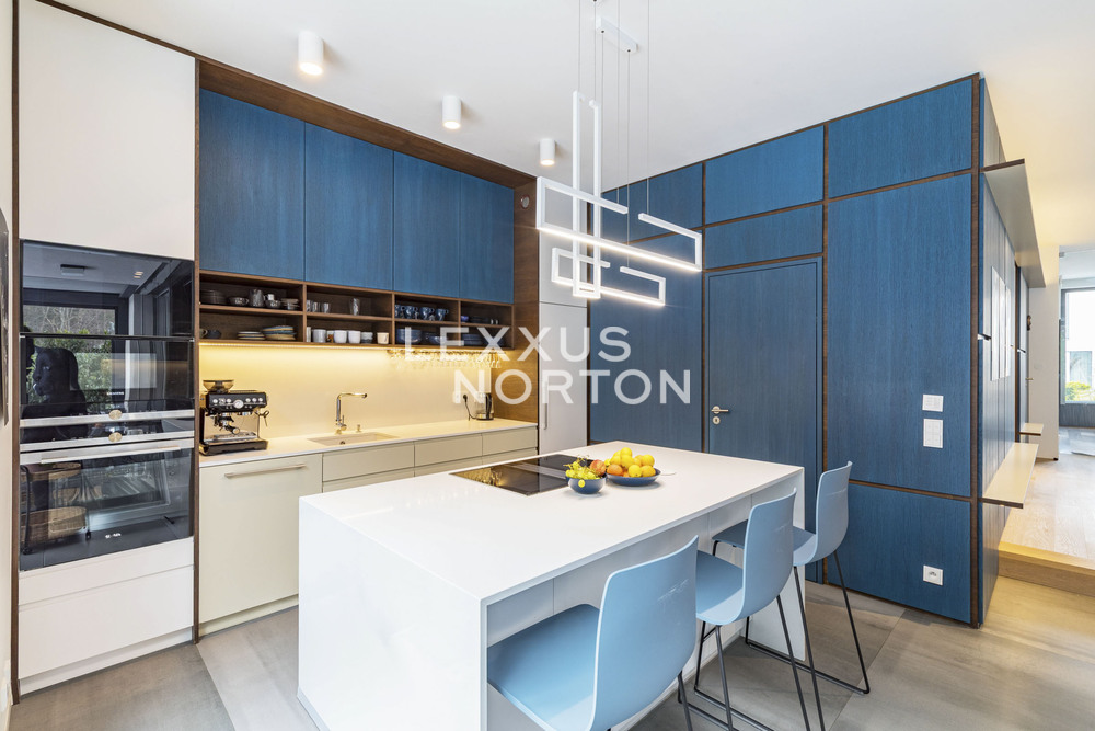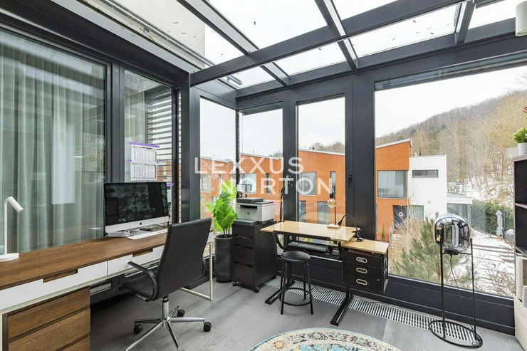 We offer you an exceptional three-story family house in a gated community in one of the most prestigious locations in Prague 6 – in Dejvice, right in the Sarecke Udoli. The villa stands on an end, south-facing plot with a professionally landscaped garden of 295.1 sqm and offers maximum privacy, peace and comfort of five-star living.The dominant feature of the house is the magnificent living space with a dining room and designer kitchen with a cooking island and Siemens appliances, complemented by a large pantry. Large windows connect the interior with the south-facing garden and a covered terrace measuring 14.17 sqm, which can be comfortably used all year round. The ground floor also offers a guest room or study and a bathroom with a shower. The entire space feels exceptionally bright, airy, and representative.Upstairs, there is a master bedroom with its own dressing room and a luxurious bathroom with a bathtub and shower, two additional bedrooms, a second bathroom, and a quiet hall ideal for relaxation. A circular skylight runs through the center of the house, bringing daylight down to the ground floor. A unique feature is the 9.21 sqm winter garden, suitable as a study, studio, or private lounge.The basement has a separate apartment with a kitchen and bathroom, with access to the garden – ideal for guests, a nanny, or multigenerational living. There is also a utility room, storage rooms, and direct access to the garage with a heated driveway and two charging stations for electric cars.This villa is the ideal choice for discerning clients looking for prestigious, secure, and truly exceptional living in a green setting, yet in close proximity to the center of Prague.The house is equipped with above-standard technologies: heat recovery, air conditioning, underfloor heating, gas condensing boiler, intelligent heating control, Lutron dimmable lighting, camera system, and security. The doors are non-rebated and tall. The floors in the house are wooden, the wooden windows have triple glazing and automatically controlled external blinds. The interior is furnished with high-quality, custom-made furniture, which can be included in the sale by agreement.This exclusive residential complex, designed by the Archicraft studio, offers a reception, 24-hour security, a private park, a pond, a children's playground, and a social club. The entire complex is set in a natural park in the immediate vicinity of Divoka and Ticha Sarka, yet with excellent access to the city center, the Bořislavka and Veleslavin metro stations, trams, and Vaclav Havel Airport (within 10 minutes). There are prestigious international schools (ISP, Riverside School) and high-quality state and private educational facilities in the vicinity.