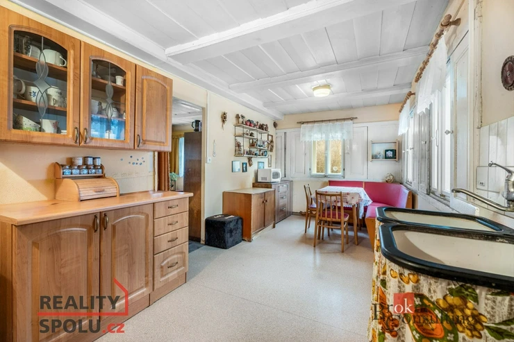 Dům je částečně zděný, částečně dřevěný – klasická podstávková stavba s osobitou atmosférou. Má nová dřevěná okna, zateplenou koupelnu, dostatek úložného prostoru (špajzky i sklepní prostory) a elektrické vytápění.