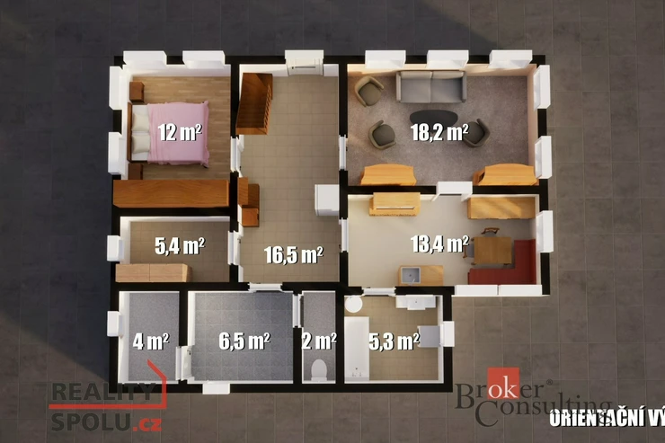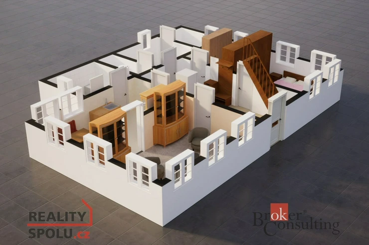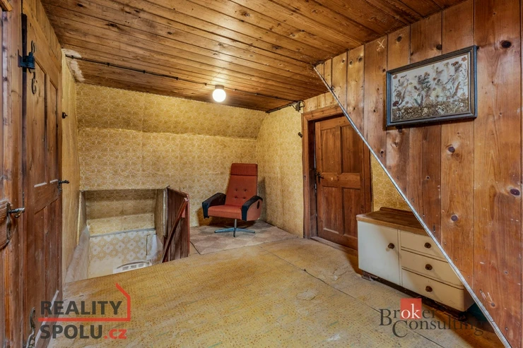 V přízemí se nachází vstupní chodba, dva pokoje, kuchyň, koupelna, špajzka a vstup na zahradu. V patře jsou další tři samostatné pokoje, které nabízí dostatek prostoru pro rodinu i hosty.