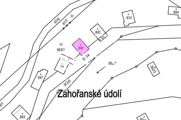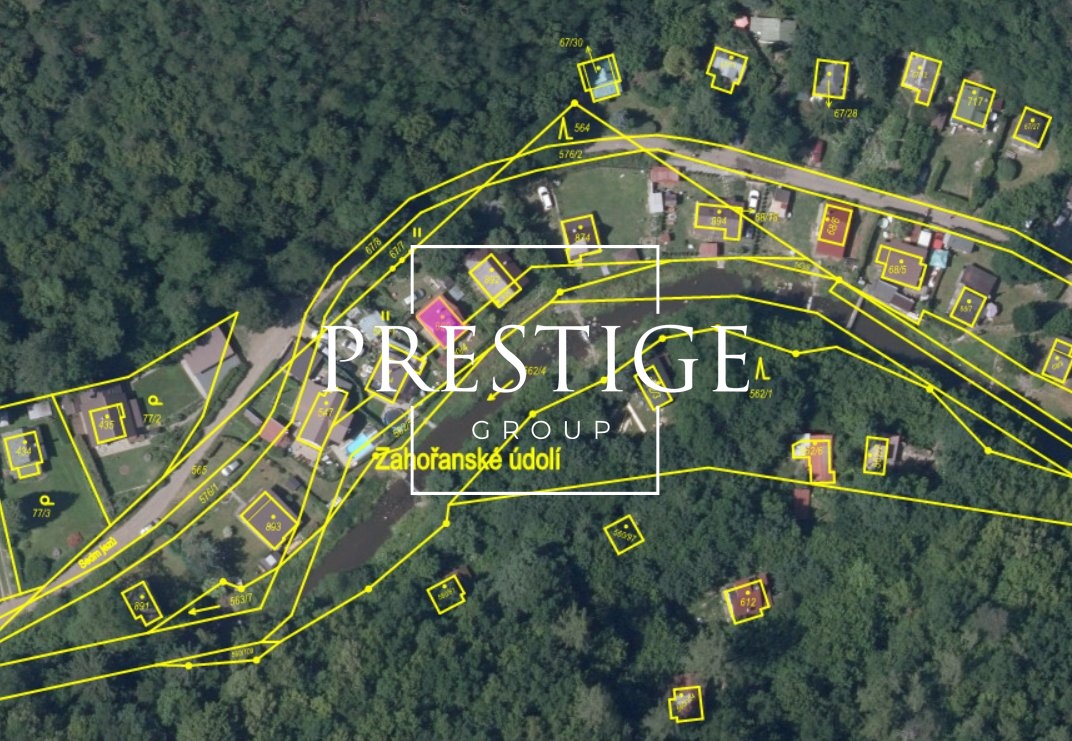 The cottage stands on plots no. 563/1, 630/4 and st. p. no. 890 in the cadastral area of Petrov u Prahy, with the land owned by the municipality of Petrov. Based on a lease agreement, part of the land with an area of 298 m² and the built-up area of the cottage of 49 m² are used.