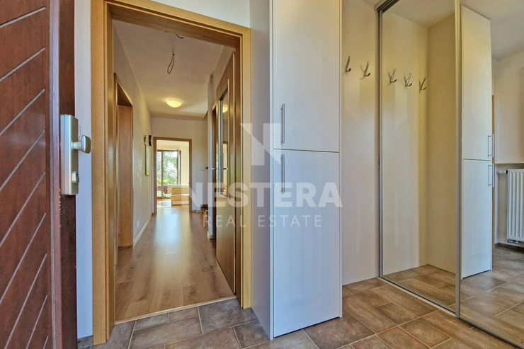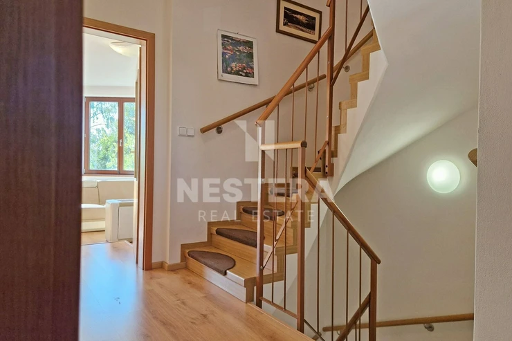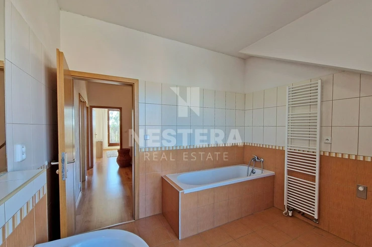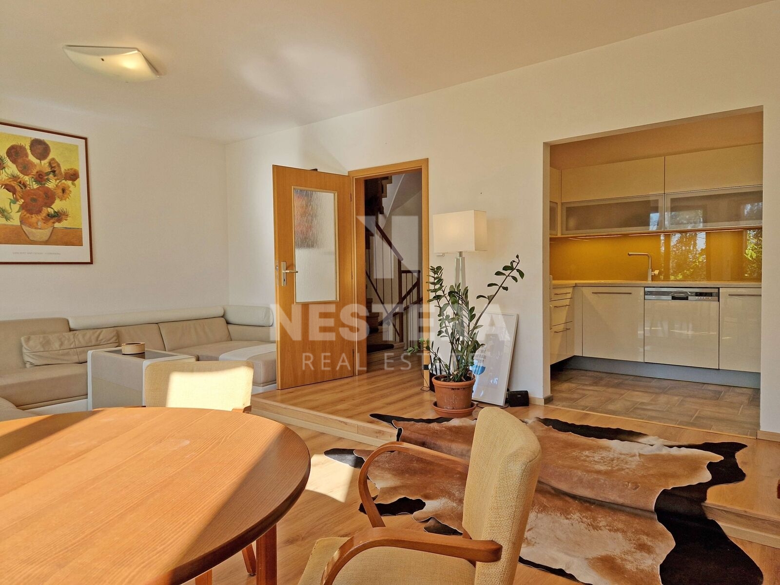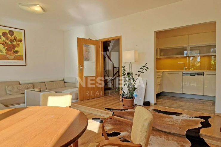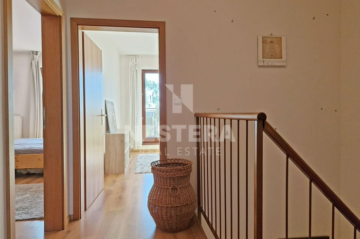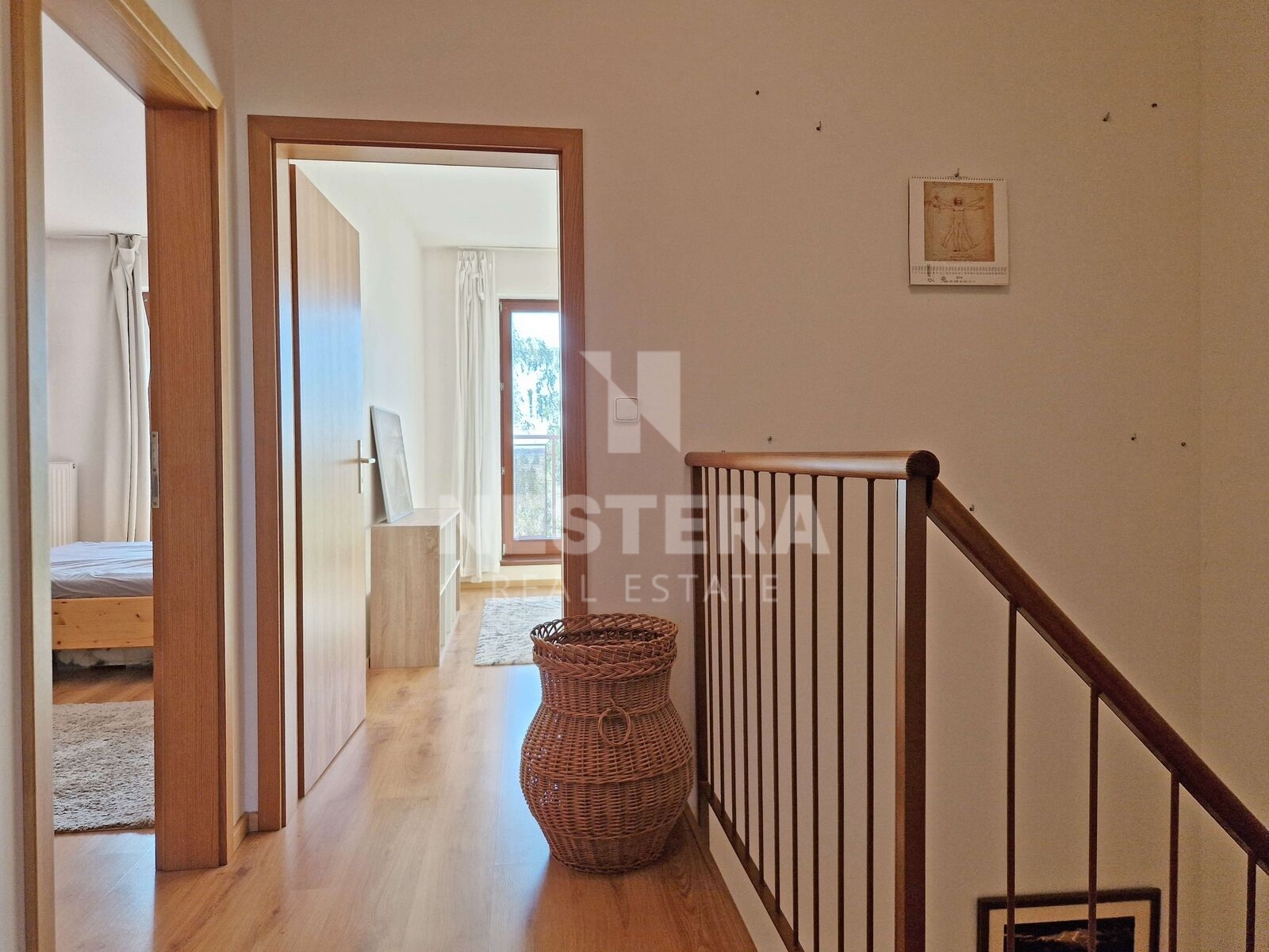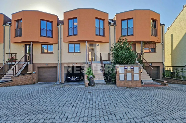 Exceptionally spacious terraced family house 5+kk, with a total interior area of 202 m² + 12.2 m² terrace + 5 m² balcony, located in the quiet and green area of Sobín, which is part of the Prague 5 – Zličín district. The house features a west-facing garden, a spacious garage for two cars, a workshop, and complete technical facilities. This house represents an ideal combination of peaceful living with excellent accessibility to the center of Prague. A major advantage of the property is also the uninterrupted view of the greenery.