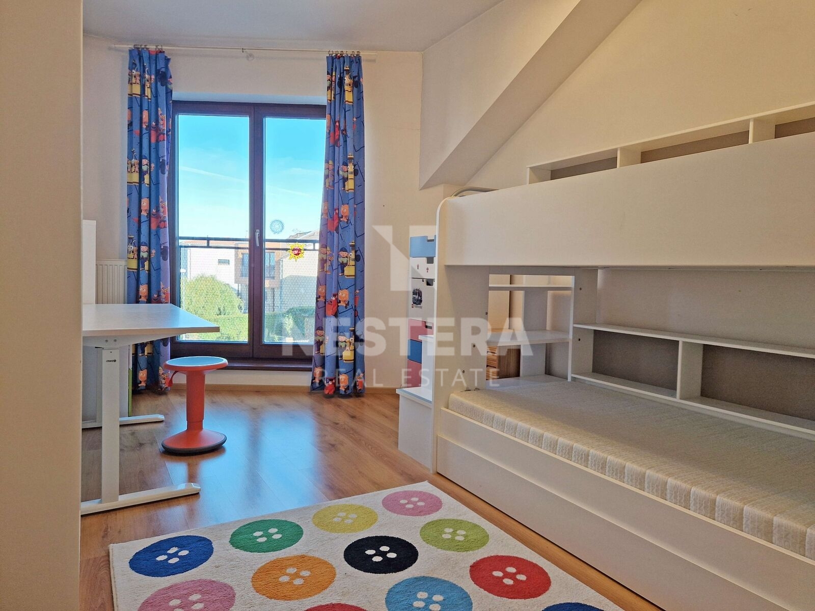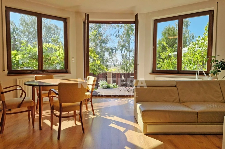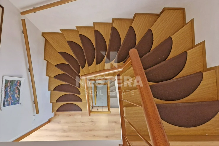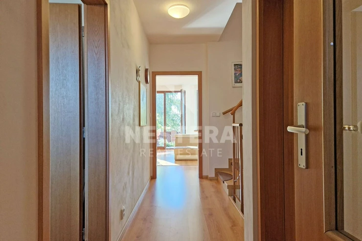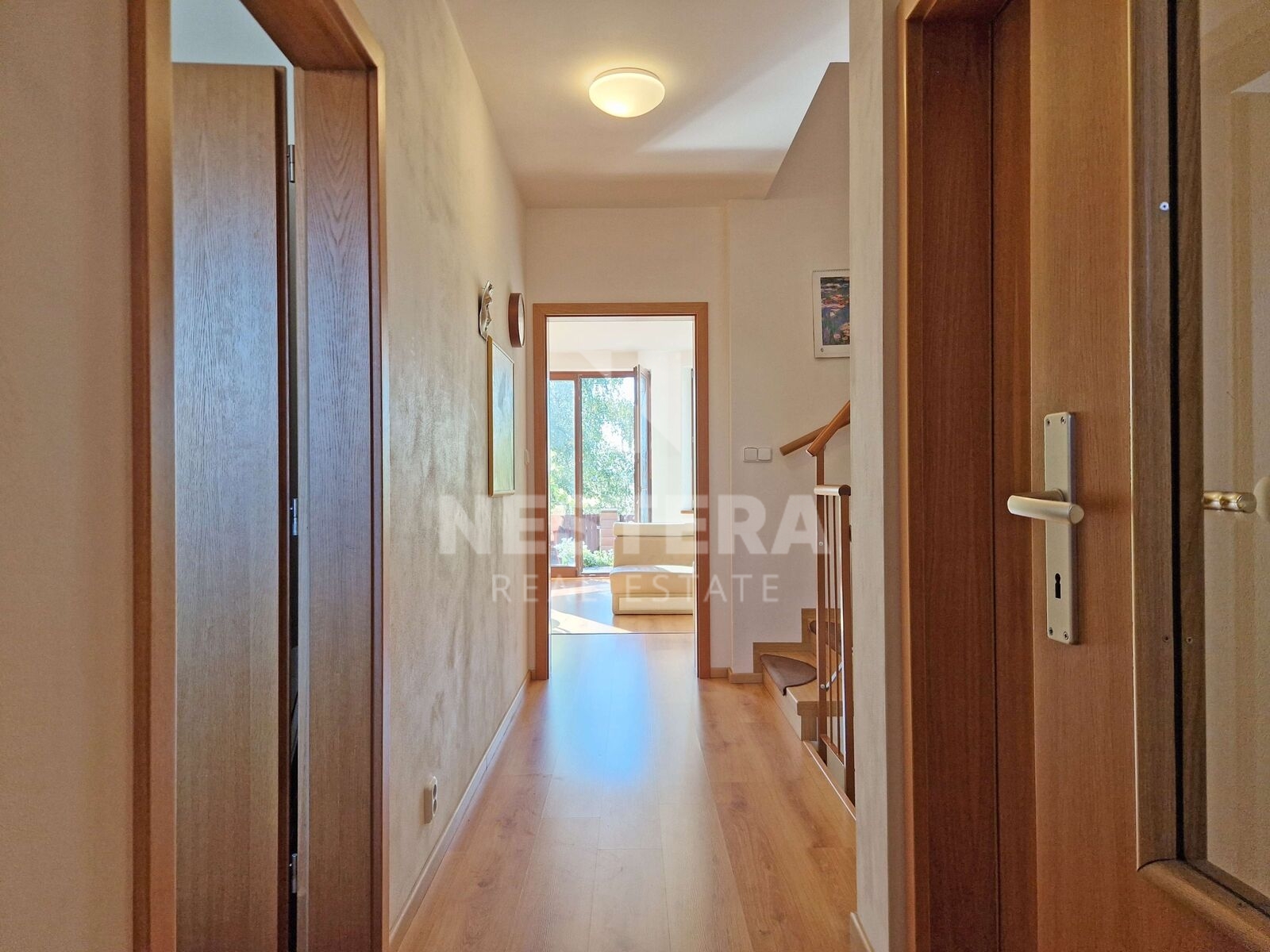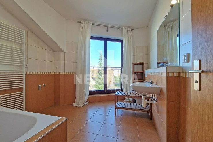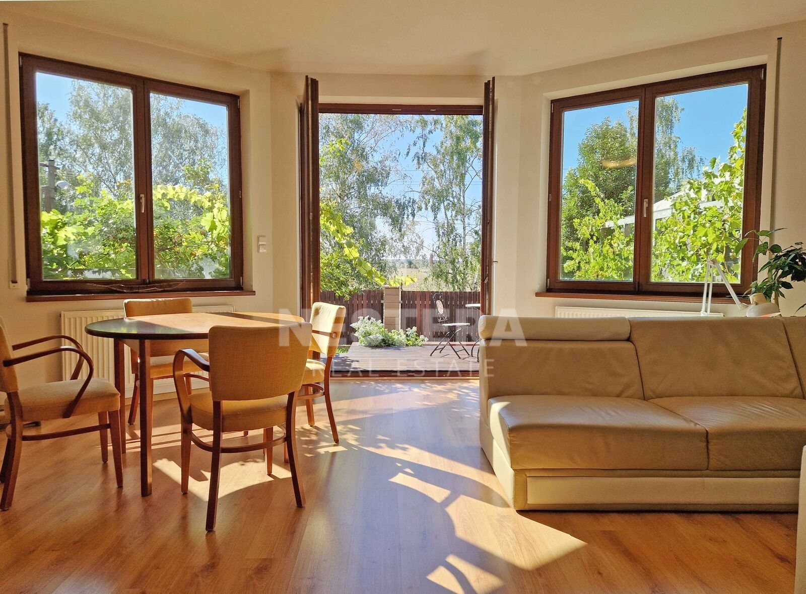 Exceptionally spacious terraced family house 5+kk, with a total interior area of 202 m² + 12.2 m² terrace + 5 m² balcony, located in the quiet and green area of Sobín, which is part of the Prague 5 – Zličín district. The house features a west-facing garden, a spacious garage for two cars, a workshop, and complete technical facilities. This house represents an ideal combination of peaceful living with excellent accessibility to the center of Prague. A major advantage of the property is also the uninterrupted view of the greenery.
