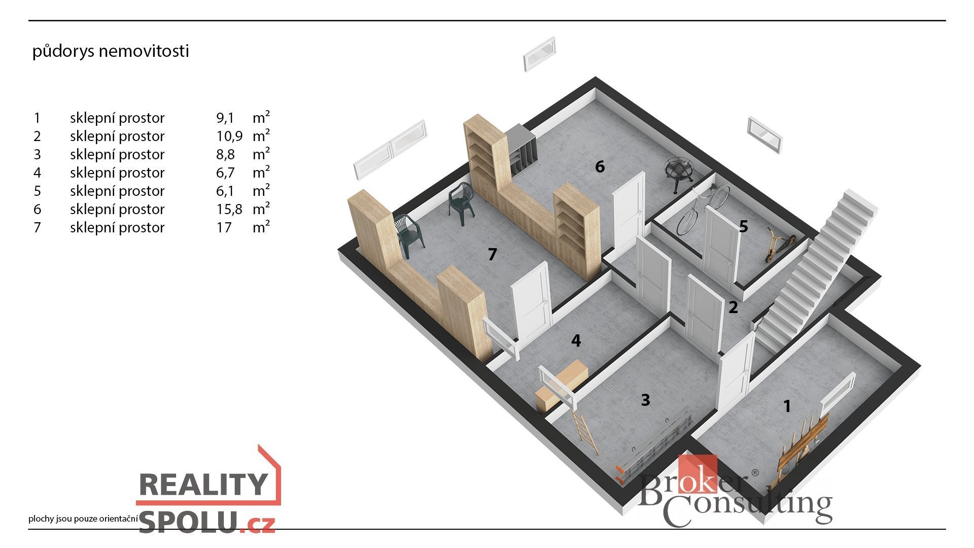 Velkou výhodou je kompletní podsklepení domu s přístupem přímo z interiéru, které poskytuje dostatek prostoru pro technické zázemí, skladování nebo hobby aktivity.