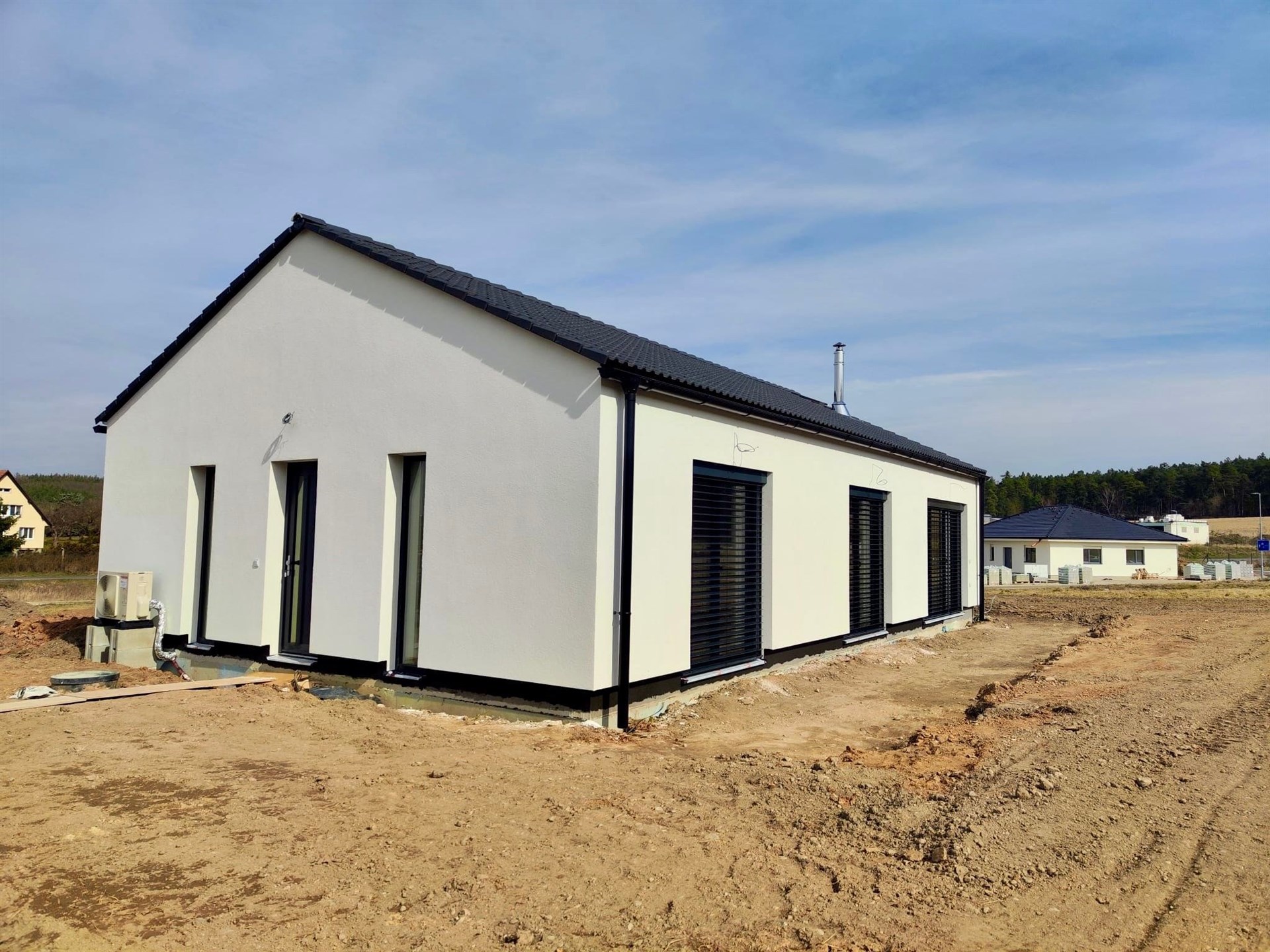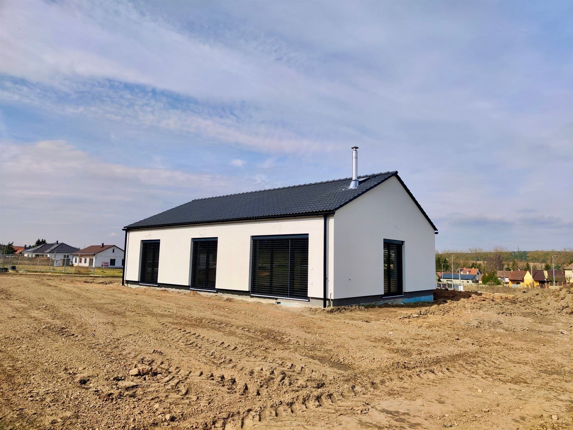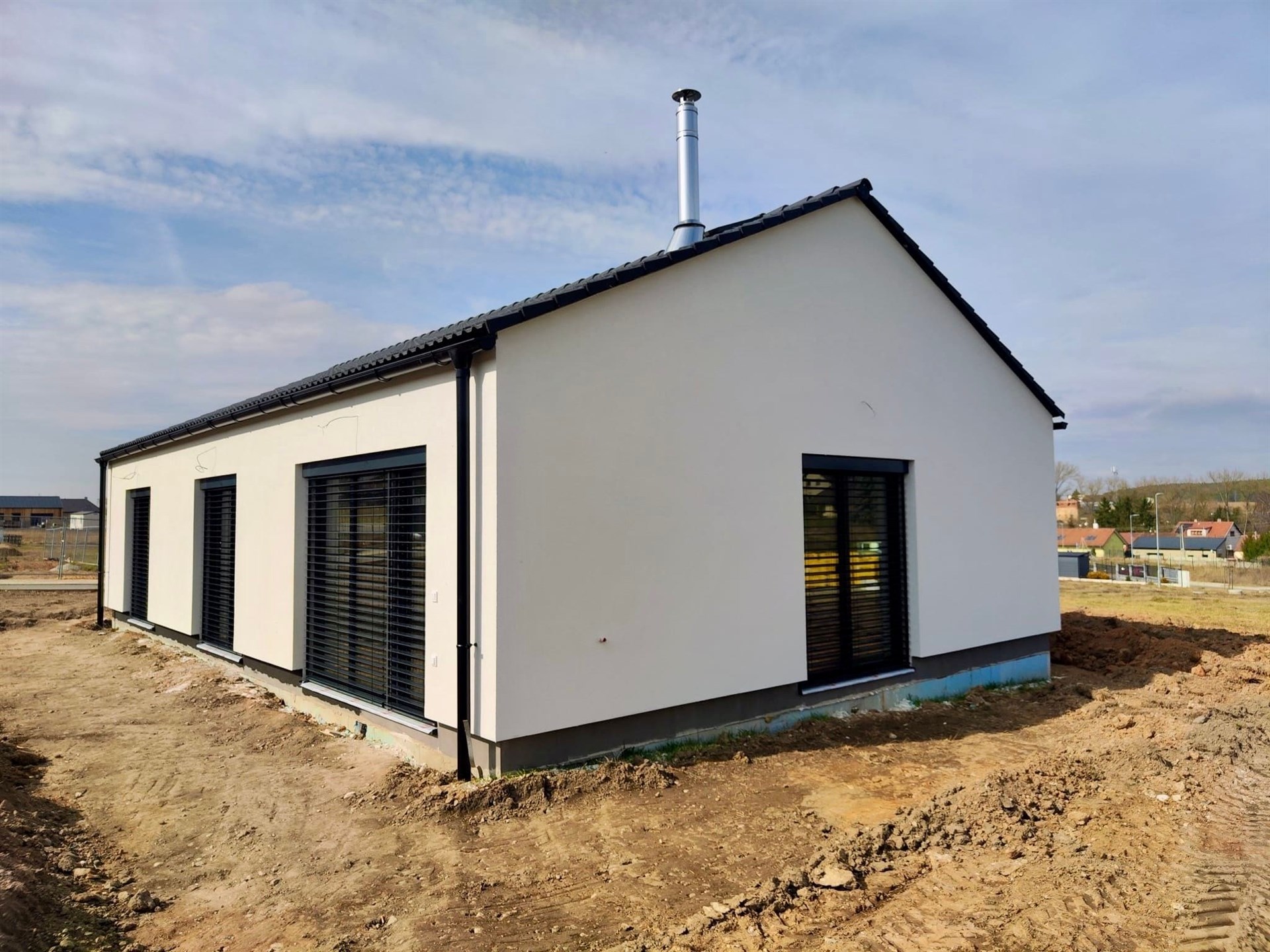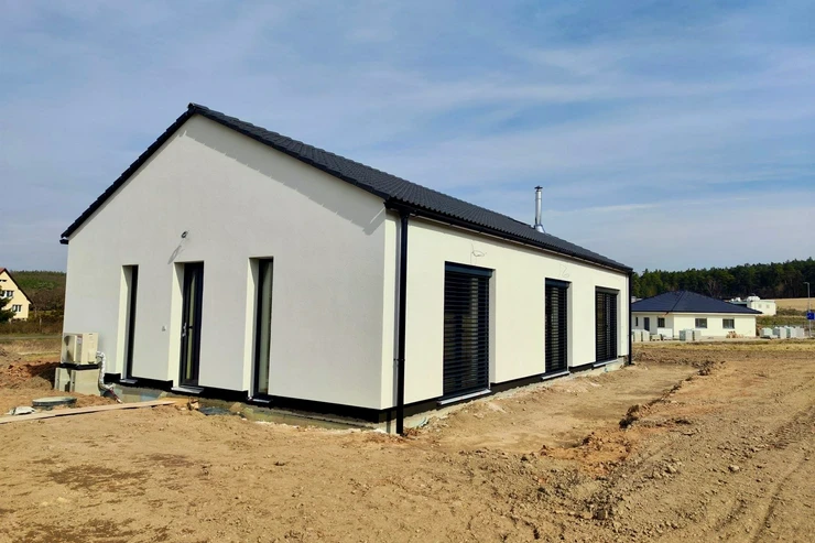 Nabízíme Vám prodej novostavby rodinného domu 4+kk, 100 m2 na pozemku o rozloze 1066 m2. V domě se nachází obývací pokoj s kuchyňským koutem, 3x ložnice, koupelna se sprchovým koutem, šatna, technická místnost, chodba a zádveří. V obývacím pokoji je kompletní příprava pro krbovou vložku. Z obývacího pokoje je přístup na pozemek. Vybavení v nadstandardu: italské keramické obklady a dlažby, vinylová podlaha, interiérové dveře se skrytými panty a magnetickou klikou. V ceně jsou hliníkové venkovní žaluzie. Vytápění je řešeno tepelným čerpadlem (podlahové vytápění v celém domě), voda městským vodovodem a odpad kanalizací. Občanská vybavenost je v okolí. Výborná dostupnost do Prahy (dálnice D6). Cena domu je za kompletně dokončenou nemovitost na klíč a termín dokončení je v Dubnu 2026.