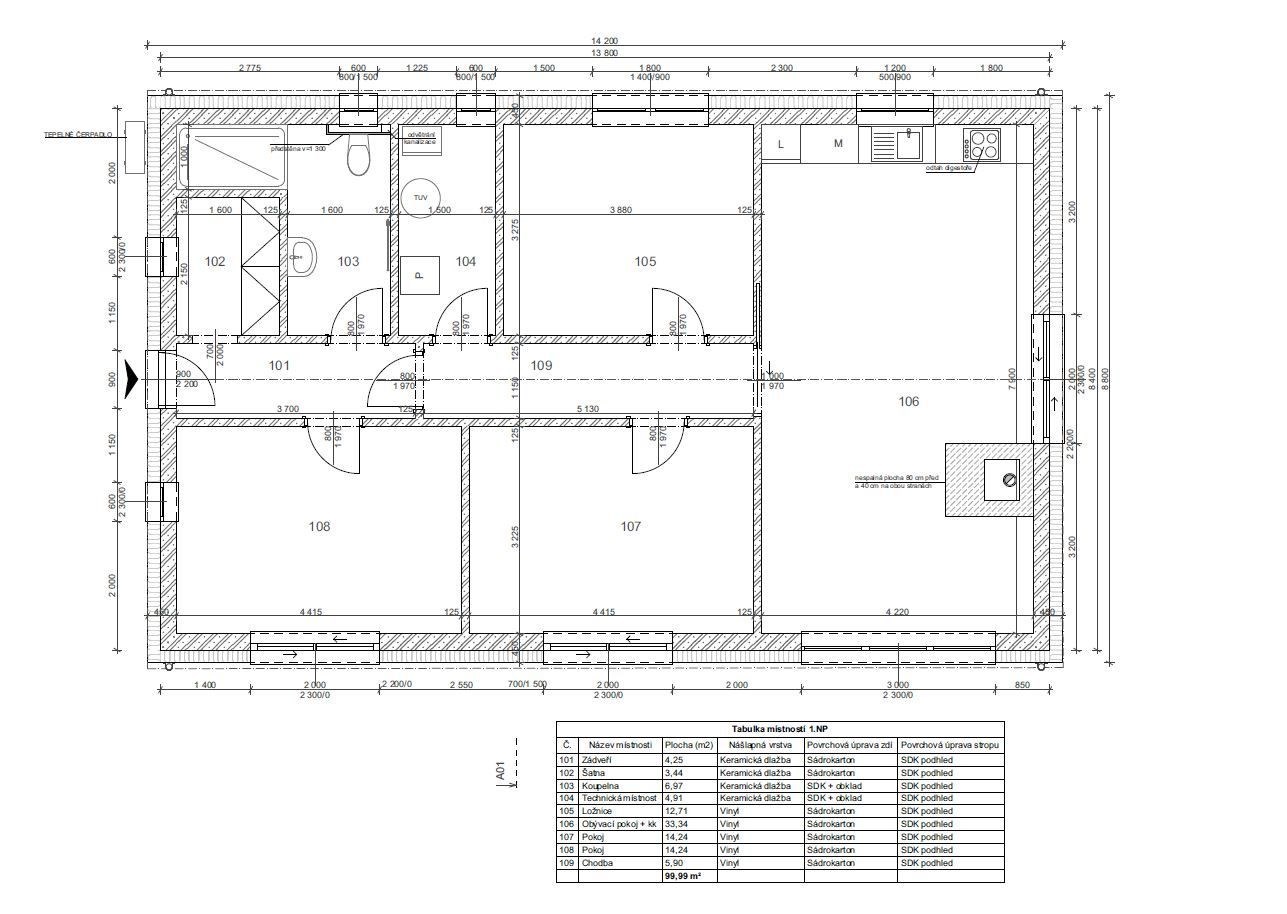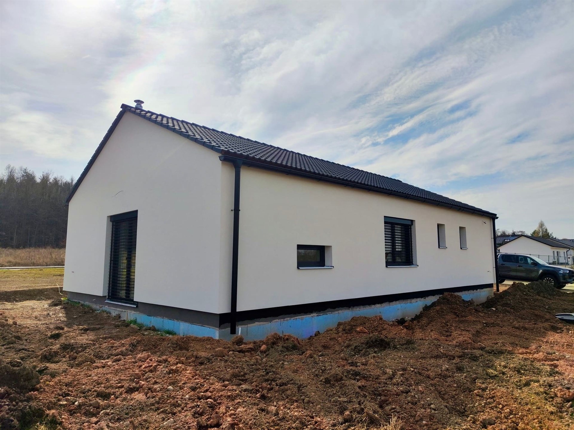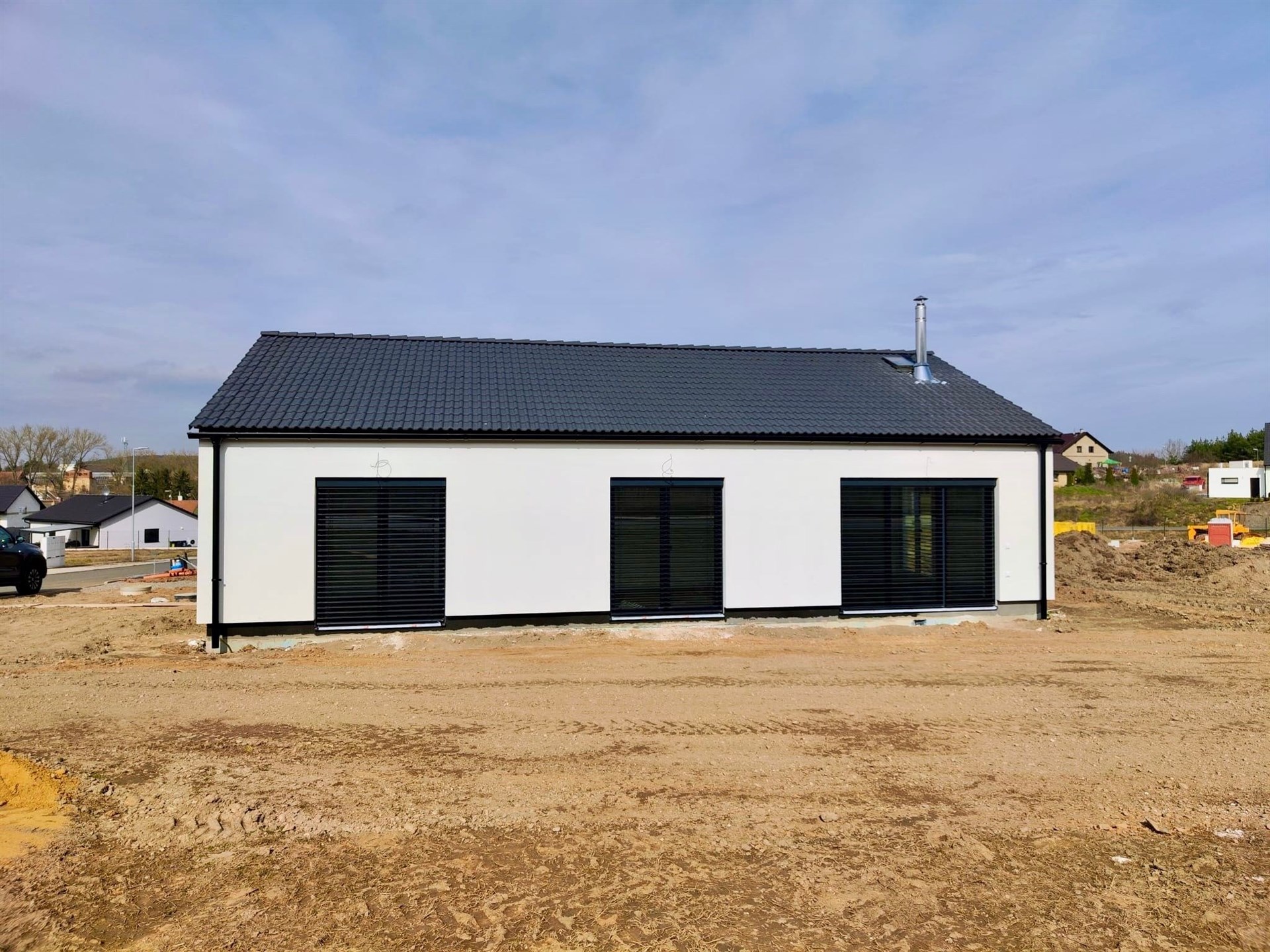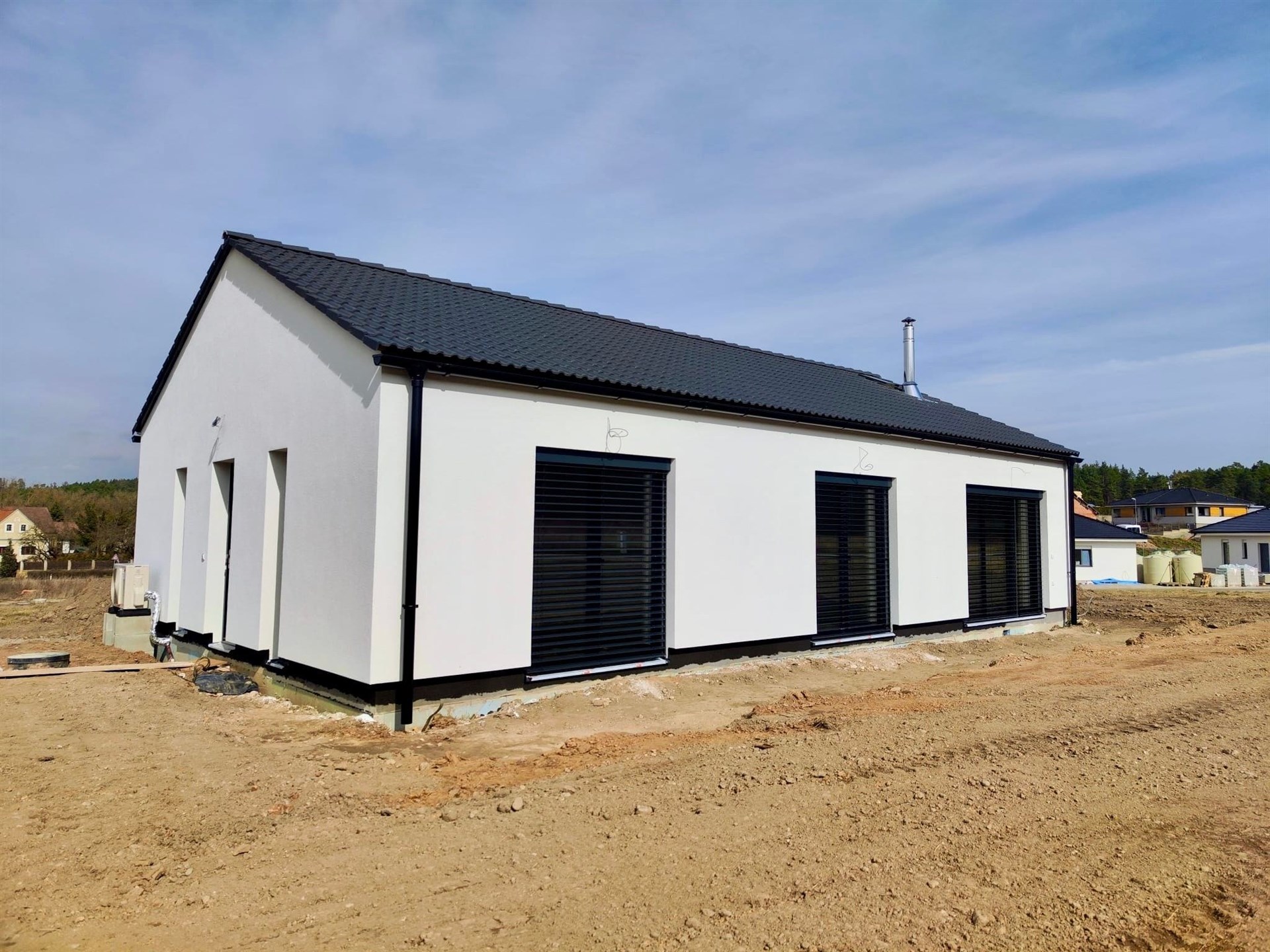 Nabízíme Vám prodej novostavby rodinného domu 4+kk, 100 m2 na pozemku o rozloze 1066 m2. V domě se nachází obývací pokoj s kuchyňským koutem, 3x ložnice, koupelna se sprchovým koutem, šatna, technická místnost, chodba a zádveří. V obývacím pokoji je kompletní příprava pro krbovou vložku. Z obývacího pokoje je přístup na pozemek. Vybavení v nadstandardu: italské keramické obklady a dlažby, vinylová podlaha, interiérové dveře se skrytými panty a magnetickou klikou. V ceně jsou hliníkové venkovní žaluzie. Vytápění je řešeno tepelným čerpadlem (podlahové vytápění v celém domě), voda městským vodovodem a odpad kanalizací. Občanská vybavenost je v okolí. Výborná dostupnost do Prahy (dálnice D6). Cena domu je za kompletně dokončenou nemovitost na klíč a termín dokončení je v Dubnu 2026.