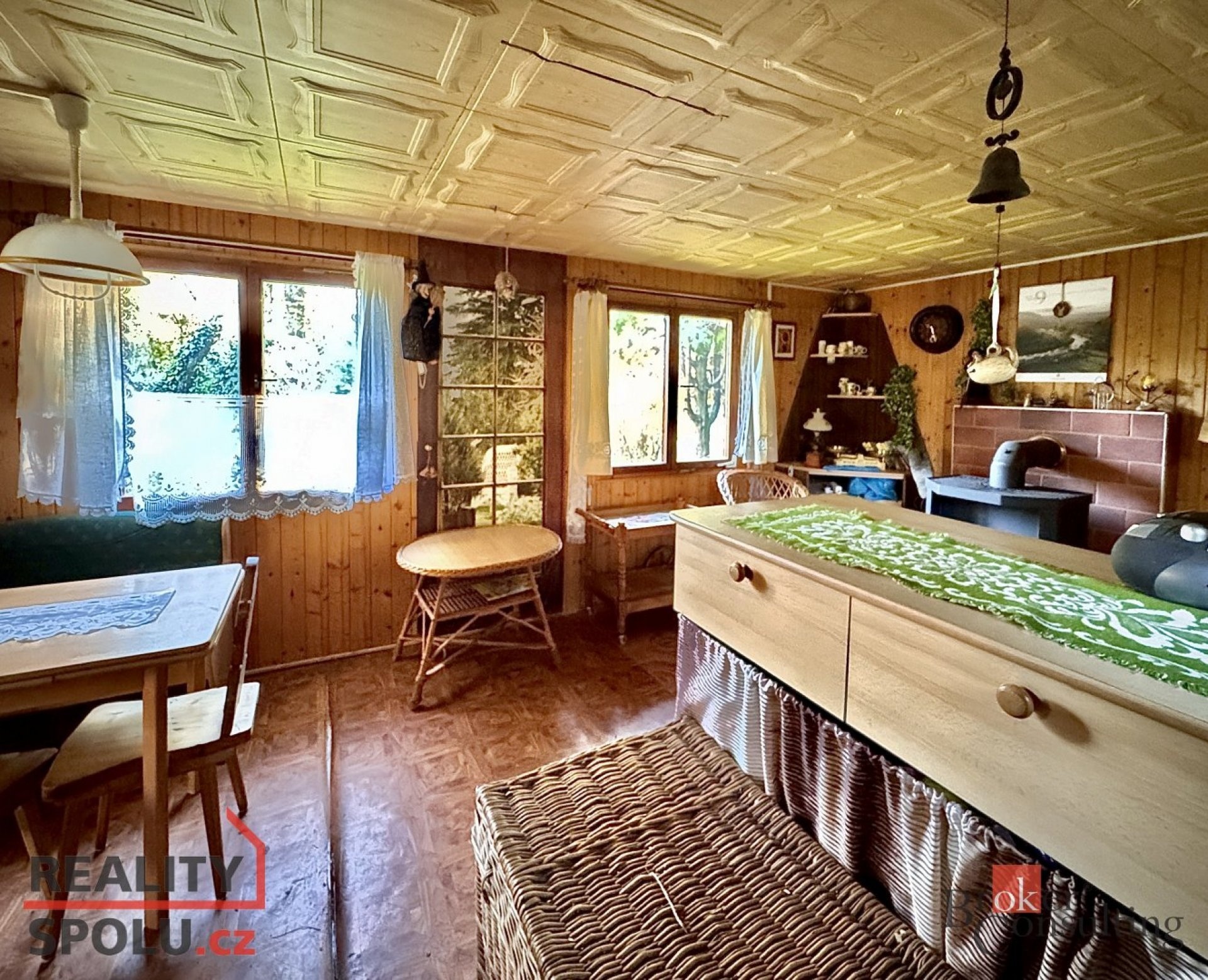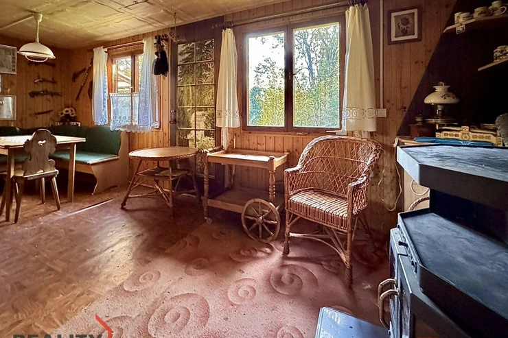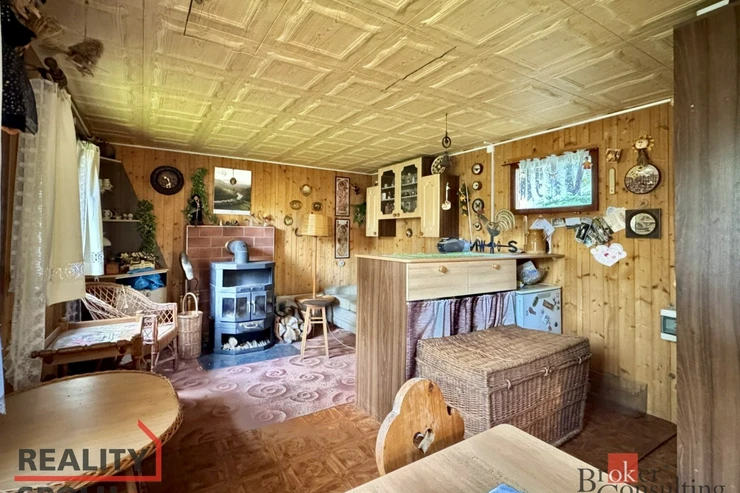 Na prodej je útulná dřevěná chata o ploše 35 m² s obytným podkrovím, ideální pro víkendové úniky i delší pobyty. V chatě je zavedena elektřina a voda, a navíc je na pozemku k dispozici přípojka plynu. Stavba stojí na prostorném a oploceném pozemku o rozloze 1 126 m², z něhož část je mírně svažitá a nabízí zajímavé možnosti terénních úprav.
