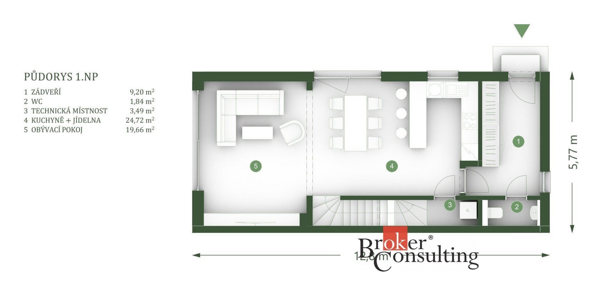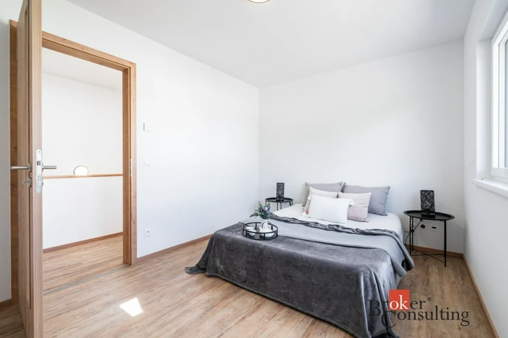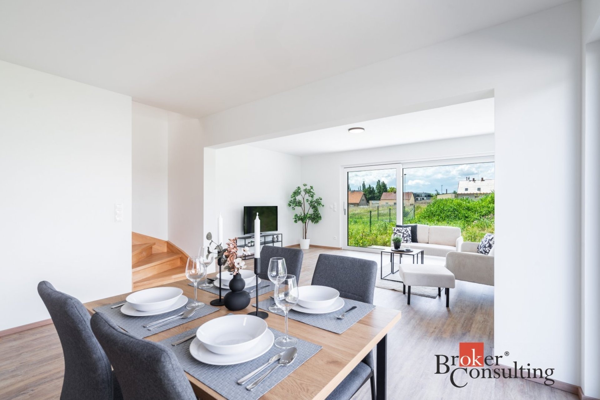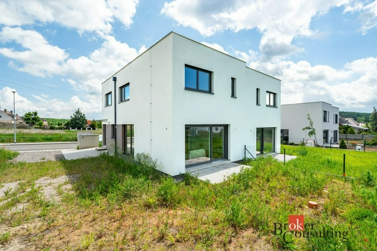 Tato právě dokončená novostavba o dispozici 5+kk nabízí užitnou plochu 119 m² a je ideální volbou pro rodinné bydlení, ale i kohokoliv, kdo chce kvalitní zázemí pro práci z domova s komfortem a prostorem navíc. Pozemek o velikosti 352 m² je ideálním místem pro odpočinek, grilování nebo dětské hry. Přímý vstup z obývacího pokoje na zahradu vytváří plynulé propojení vnitřního a venkovního prostoru.