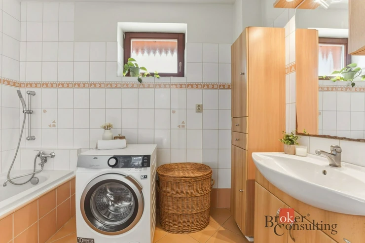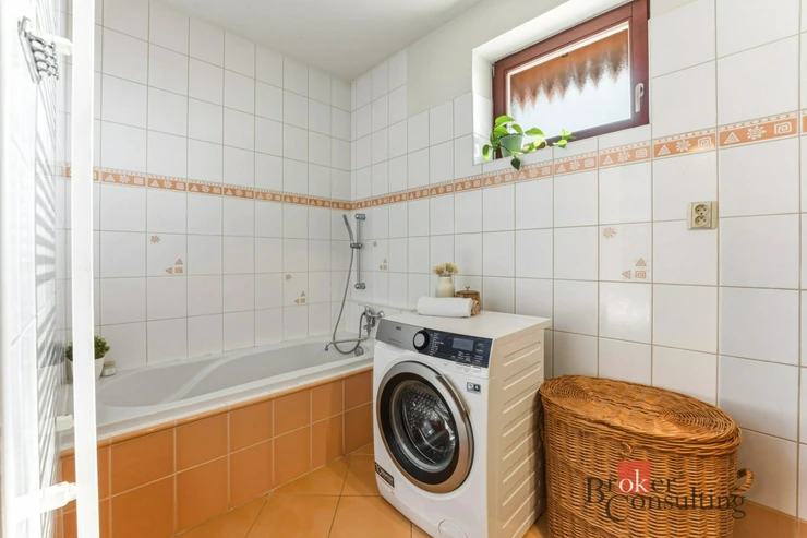 V přízemí se dále nachází koupelna (5,40 m²), samostatné WC a praktická komora (2,60 m²), která pomůže udržet domácnost přehledně organizovanou.