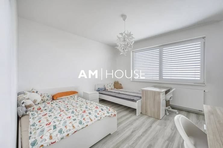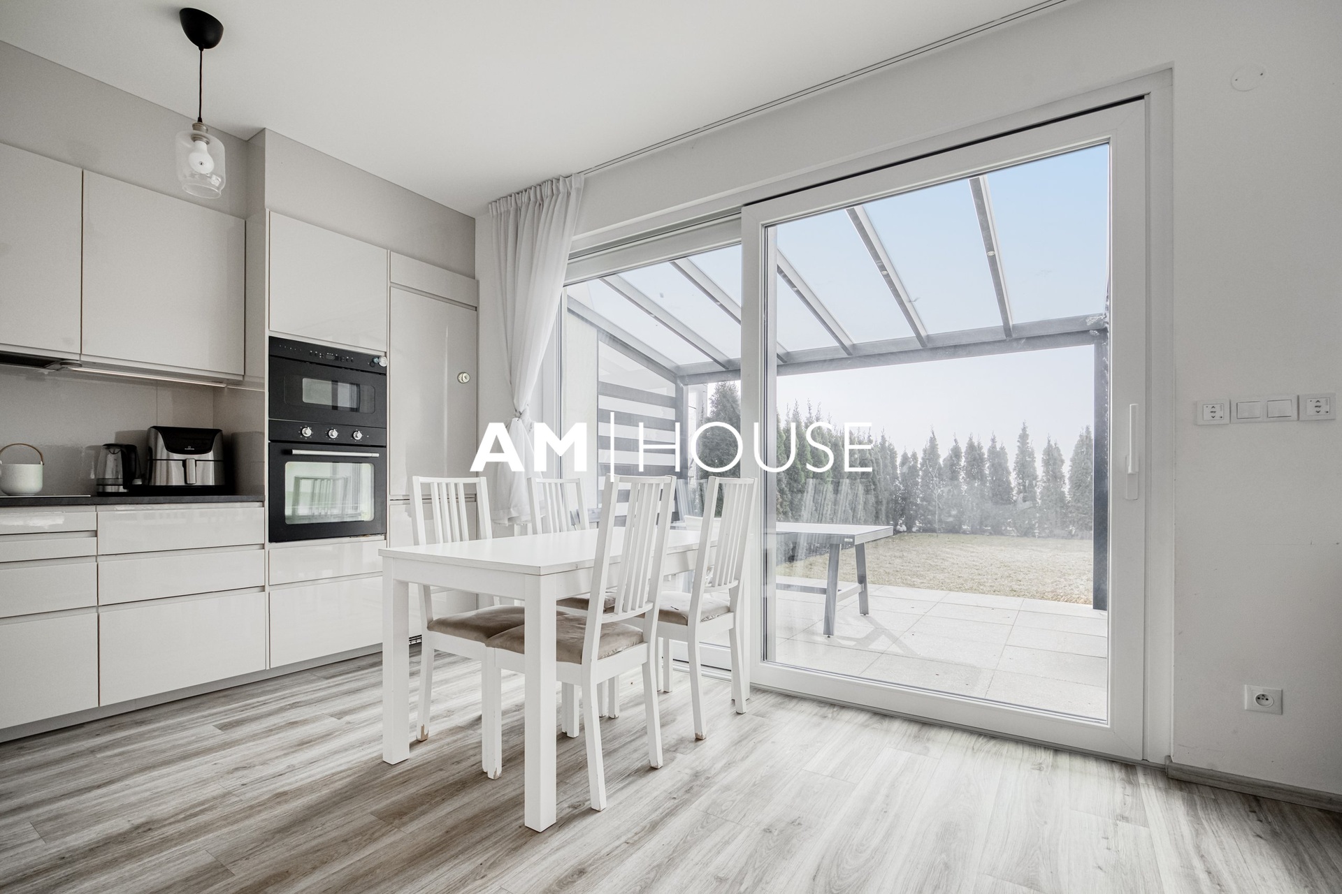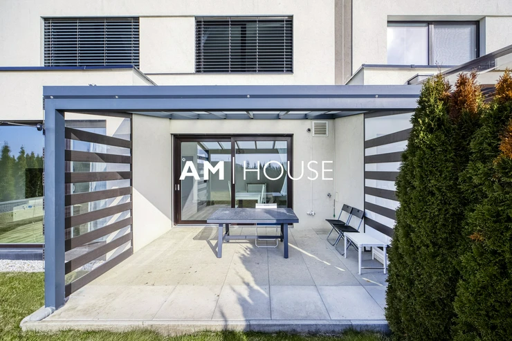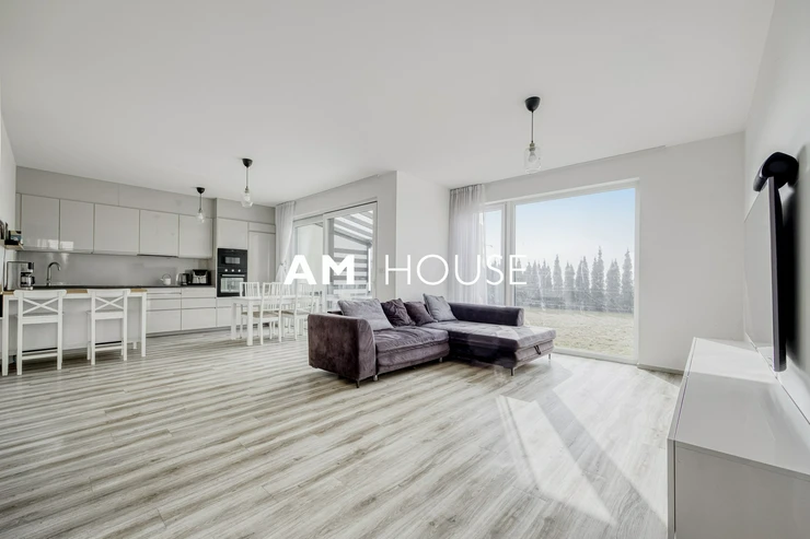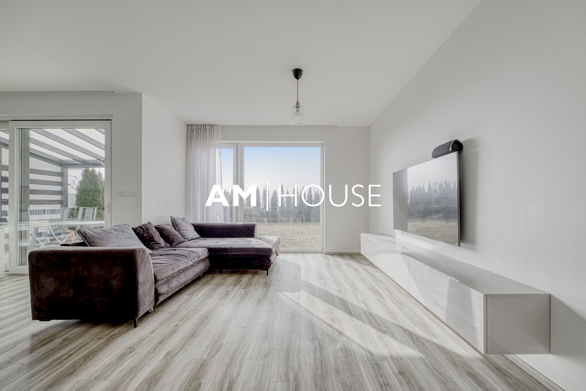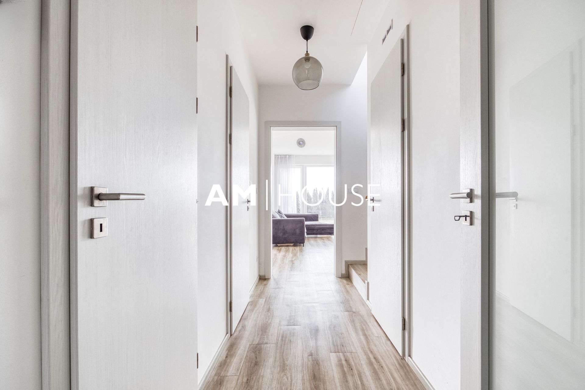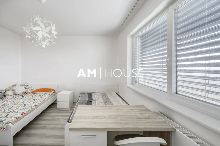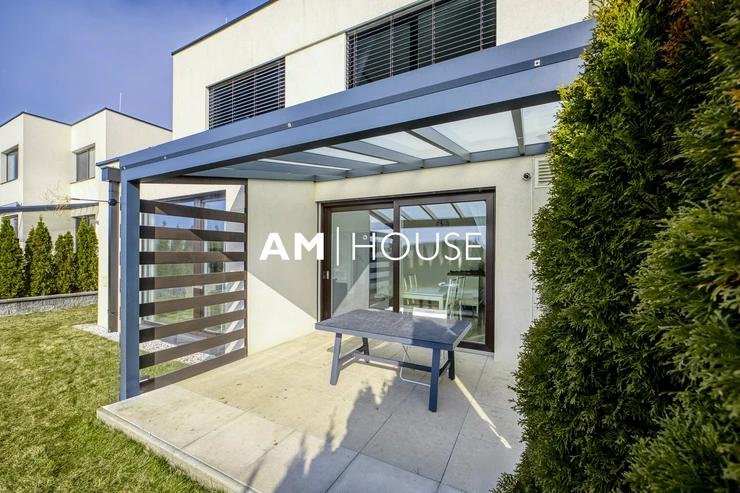 Dům nabízí komfortní rodinné bydlení s důrazem na moderní technologie, energetickou úspornost a praktické řešení prostoru. V přízemí se nachází prostorný obývací pokoj s kuchyňským koutem a přímým vstupem na zahradu, který tvoří přirozené centrum domu. Díky velkým oknům je interiér velmi světlý a příjemně propojený s venkovním prostorem. V patře jsou umístěny tři samostatné ložnice a koupelna, což poskytuje dostatek soukromí pro všechny členy domácnosti.