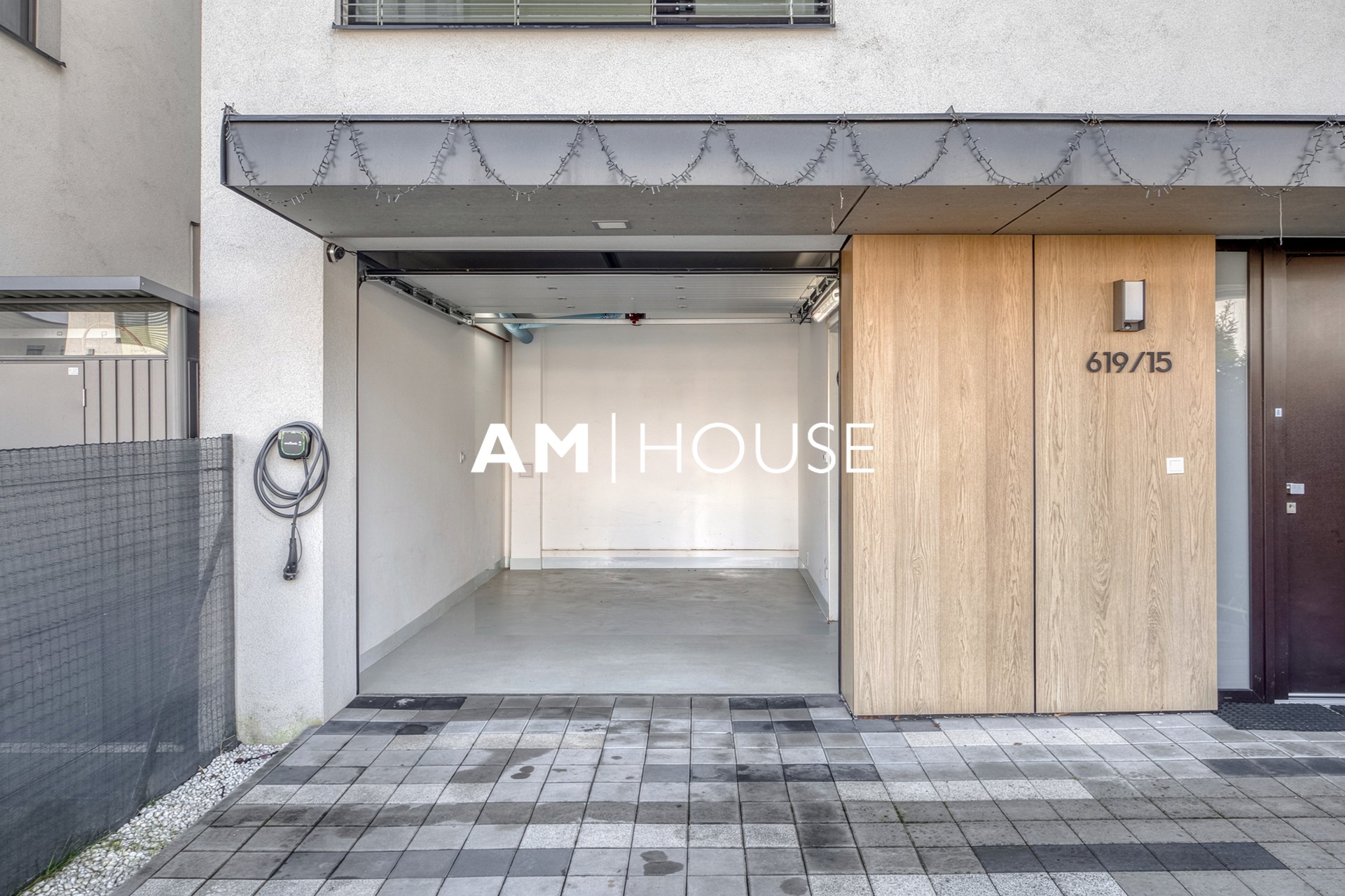 Dalším praktickým prvkem je vjezdová brána realizovaná na míru dle projektu. Lokalita nabízí klidné rodinné bydlení s dobrou dostupností do centra Prahy a zároveň příjemné okolí s dostatkem zeleně.