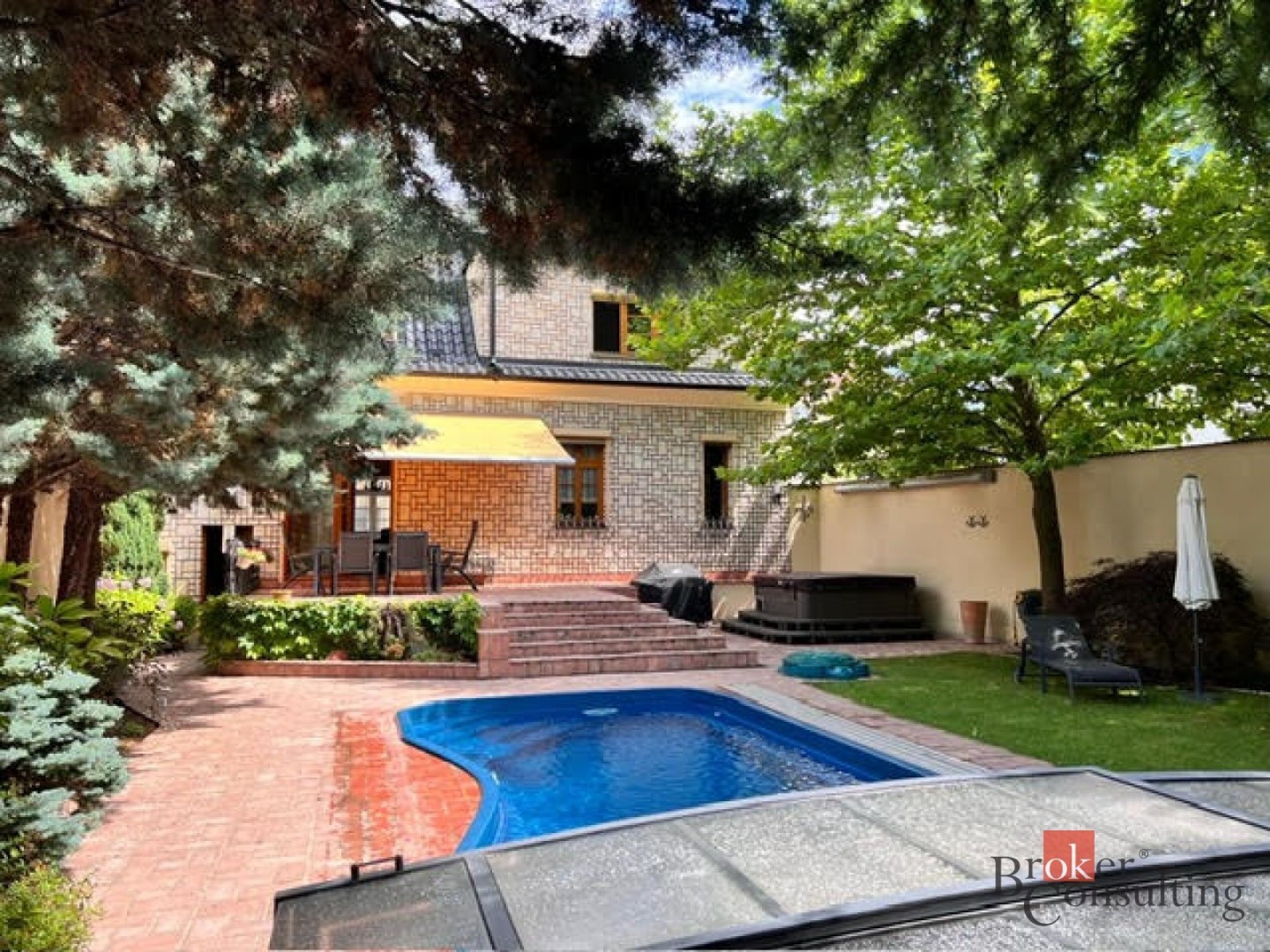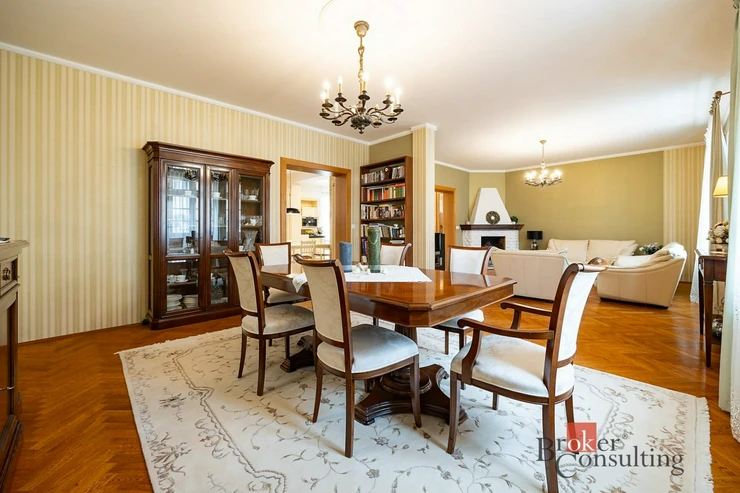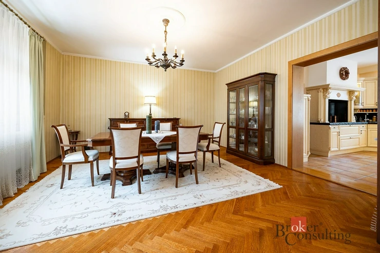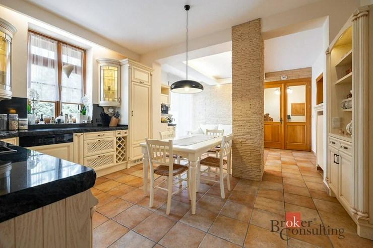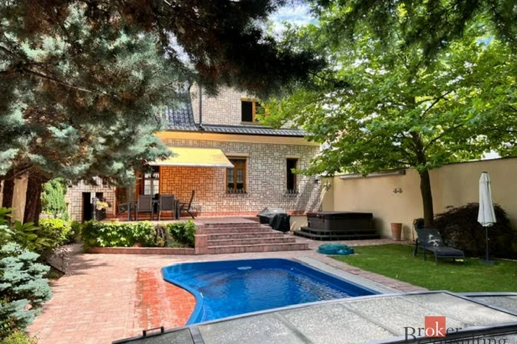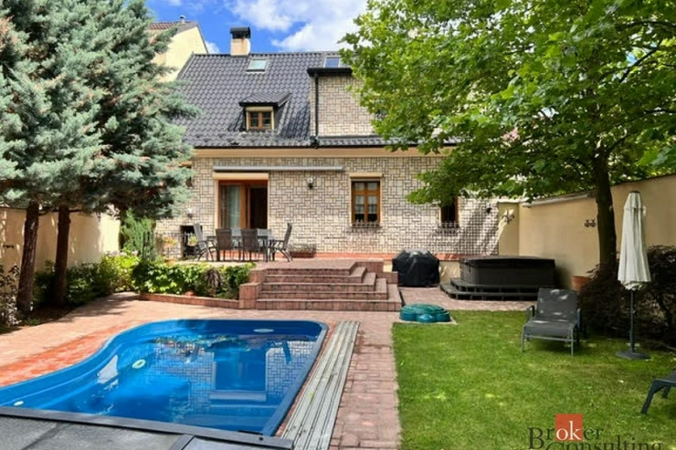 Exkluzivně nabízíme k prodeji krásný rodinný dům v klidné části Benešova nedaleko centra města. Prostorný dům zařízený ve vysokém standardu s dispozicí 6 + 1 a užitnou plochou 270 m2 stojí na vlastním pozemku o výměře celkem 454m2. Stavba postavená původně v roce 1927 prošla v roce 2002 důkladnou rekonstrukcí, která kromě změny dispozic zahrnovala také kompletní výměnu rozvodů, oken a dveří, ale také pečlivou izolaci zdiva. V prvním nadzemním podlaží se nachází prostorný obývací pokoj s krbem a navazující jídelnou, kuchyň, WC/sprcha, spíž a předsíň. Ve druhém nadzemním podlaží najdete ložnici se šatnou, dva pokoje, pracovnu a velkou koupelnu. K dispozici je také dobře přístupné obytné podkroví, které lze využít podle potřeby nových majitelů. V suterénu najdeme technickou místnost a hernu s kulečníkem. Ze stylové kuchyně osazené kvalitními spotřebiči Miele se vstupuje na prostornou terasu s posezením pod markýzou a navazující vzrostlou zahradu s velkým bazénem s protiprodem a vířivkou. Na opačném konci pozemku se nachází prostorná garáž pro dva vozy s dílnou/skladem. Vzrostlé stromy na pozemku zajišťují maximální soukromí a pohledově odstiňují prostor od sousedních nemovitostí. Nemovitost se nachází jen tři minuty chůze od centra města a v okolí lze najít veškerou občanskou vybavenost včetně polikliniky, mateřské školy, tří škol, sportovišť a několika obchodů. Důležitou informací pro ty, kteří marně hledají bydlení v rodinném domě v Praze za přijatelnou cenu je, že z nedalekého vlakového nádraží se za 39 minut rychlíkem dostanete do centra Prahy (Hlavní nádraží). Dům je nyní ihned připravený k nastěhování. Dům doporučujeme vážným zájemcům o špičkové bydlení v centru krásného středočeského města k osobní prohlídce.