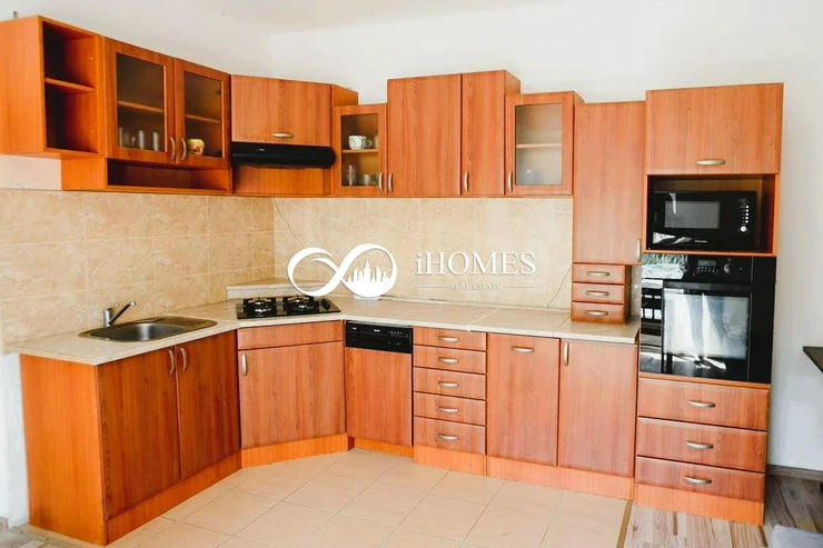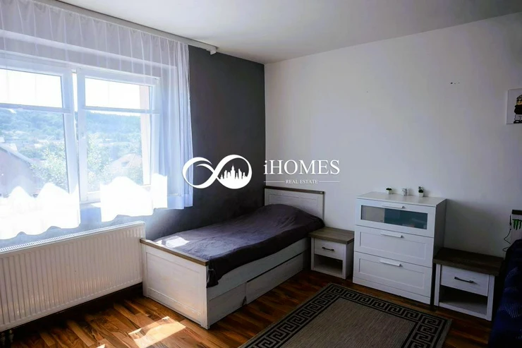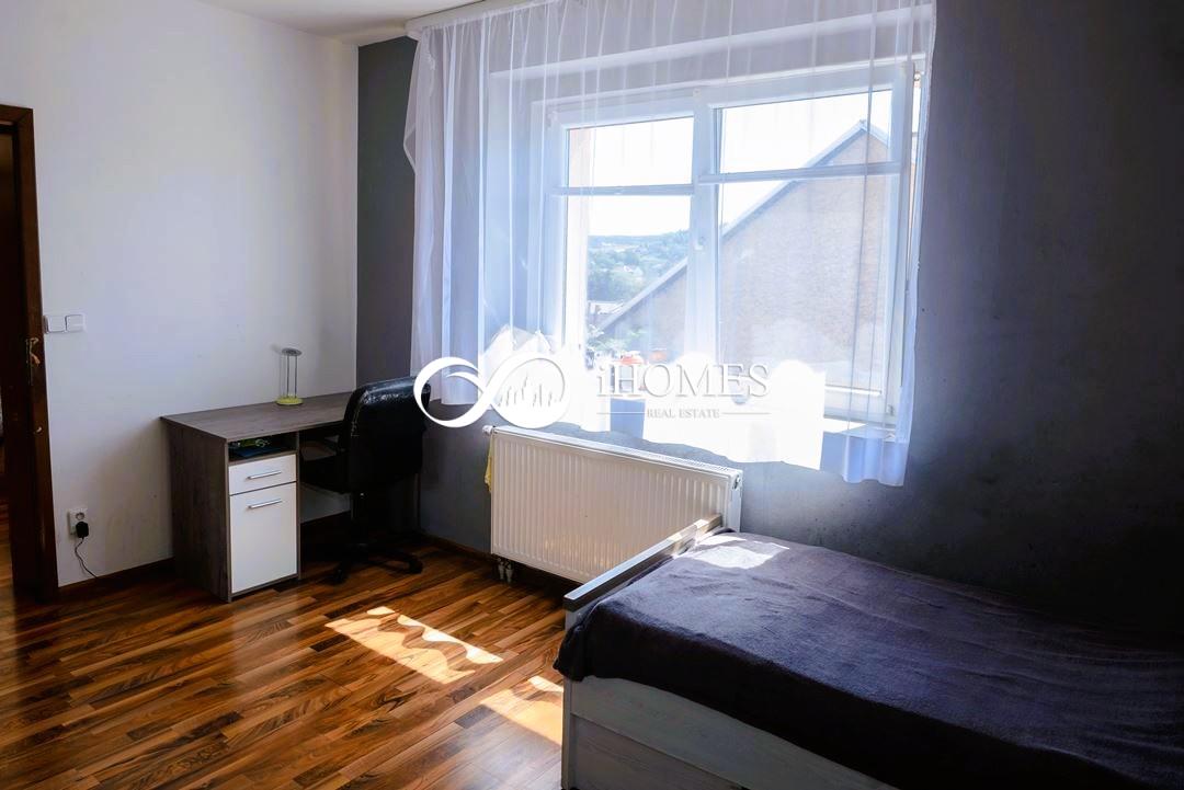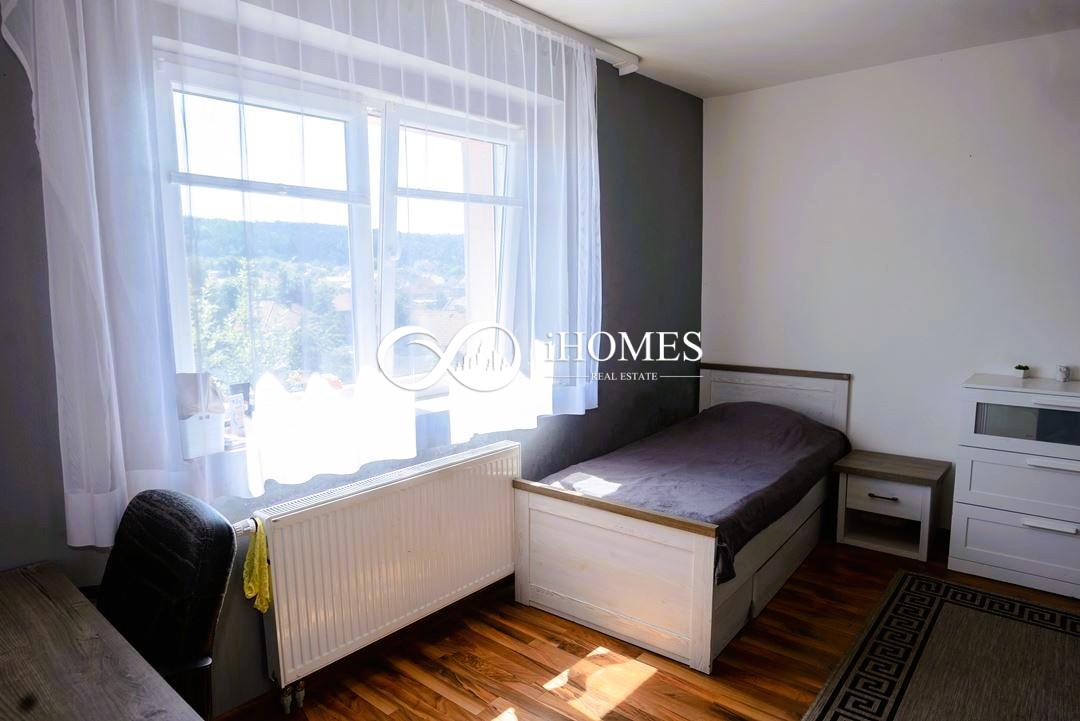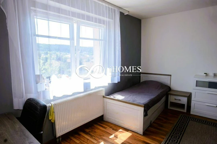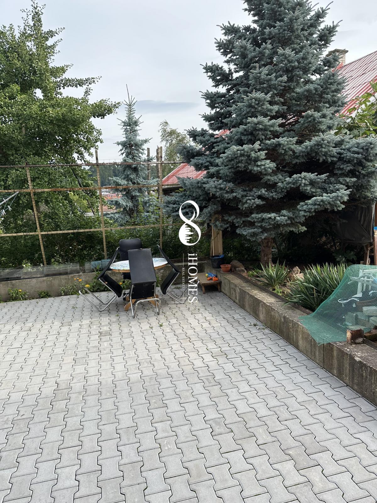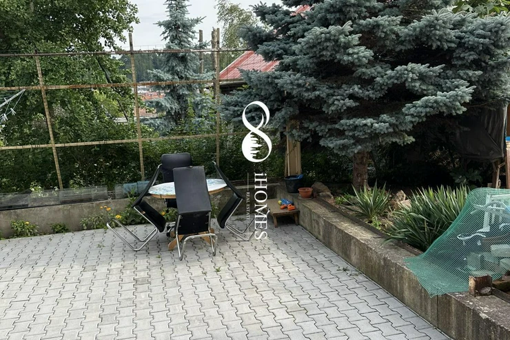 Another part of the house is a 2+kk apartment of 50 m, which has an entrance from the garden due to the complex and #39;s location on a slope. This apartment also has its own bathroom with a shower and WC, a spacious newly furnished kitchen with a dining area, and a bedroom with a French window opening onto the garden.