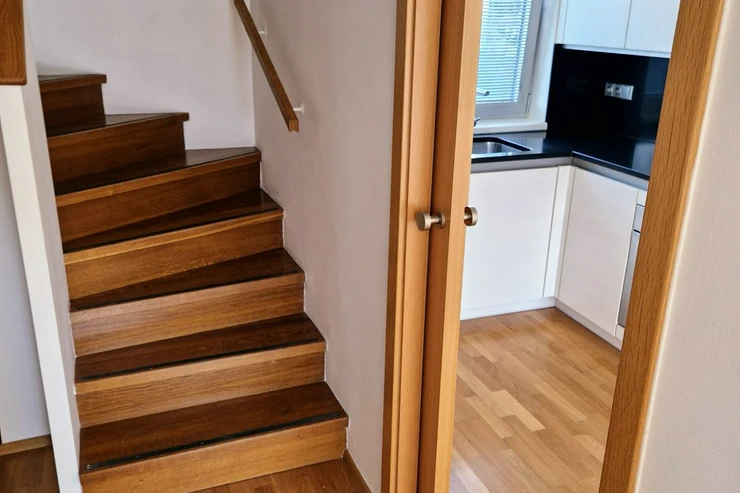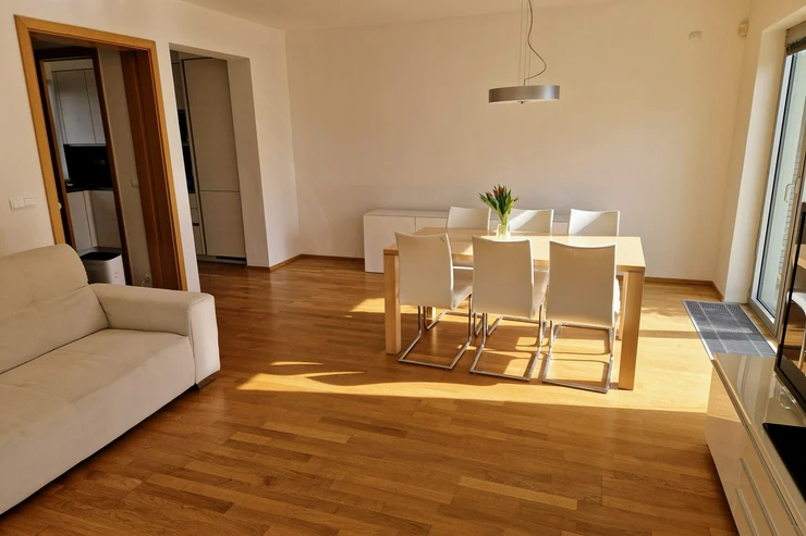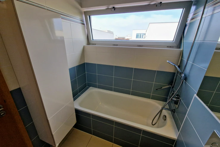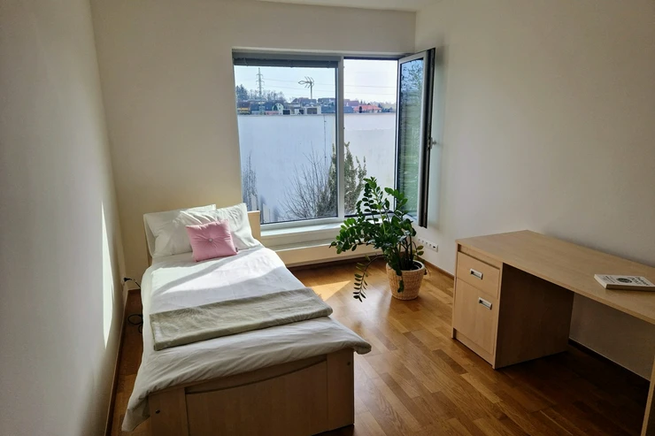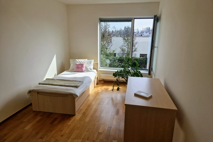 Transportation is very convenient — the U Křížku bus stop (line 386 to Zličín metro) is about a 5-minute walk, with a travel time of approximately 28 minutes. By car, Zličín is reachable in about 10 minutes via the D6 highway, with direct access to the Prague Ring Road. The airport is about 15 minutes away, and Kladno is 9 km (approx. 5.6 miles).