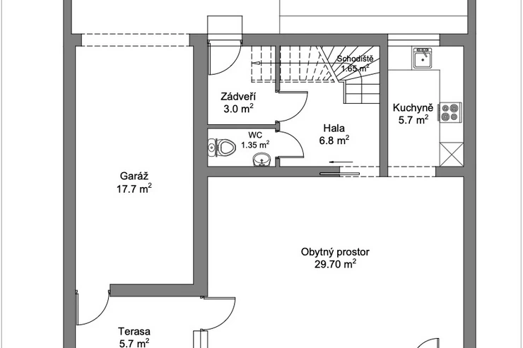 We are offering for sale a 3-bedroom family home located in the quiet residential neighborhood of Terasy in Unhošť. Built in 2010, the home features a practical layout, ample storage space, and a seamless connection between the living area and the garden.