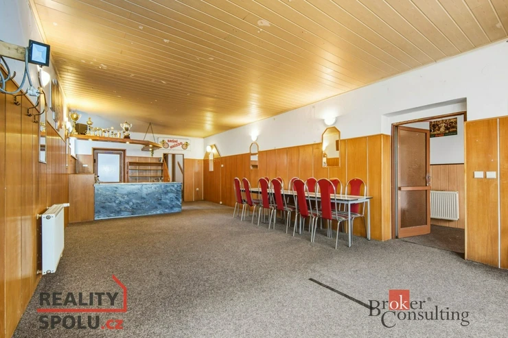 V přízemí domu se nachází plně funkční hospoda s kuchyní a zázemím, na kterou přímo navazuje venkovní posezení, ideální pro letní provoz. Součástí přízemí je také bytová jednotka 1+1, vhodná k bydlení či pronájmu.