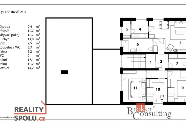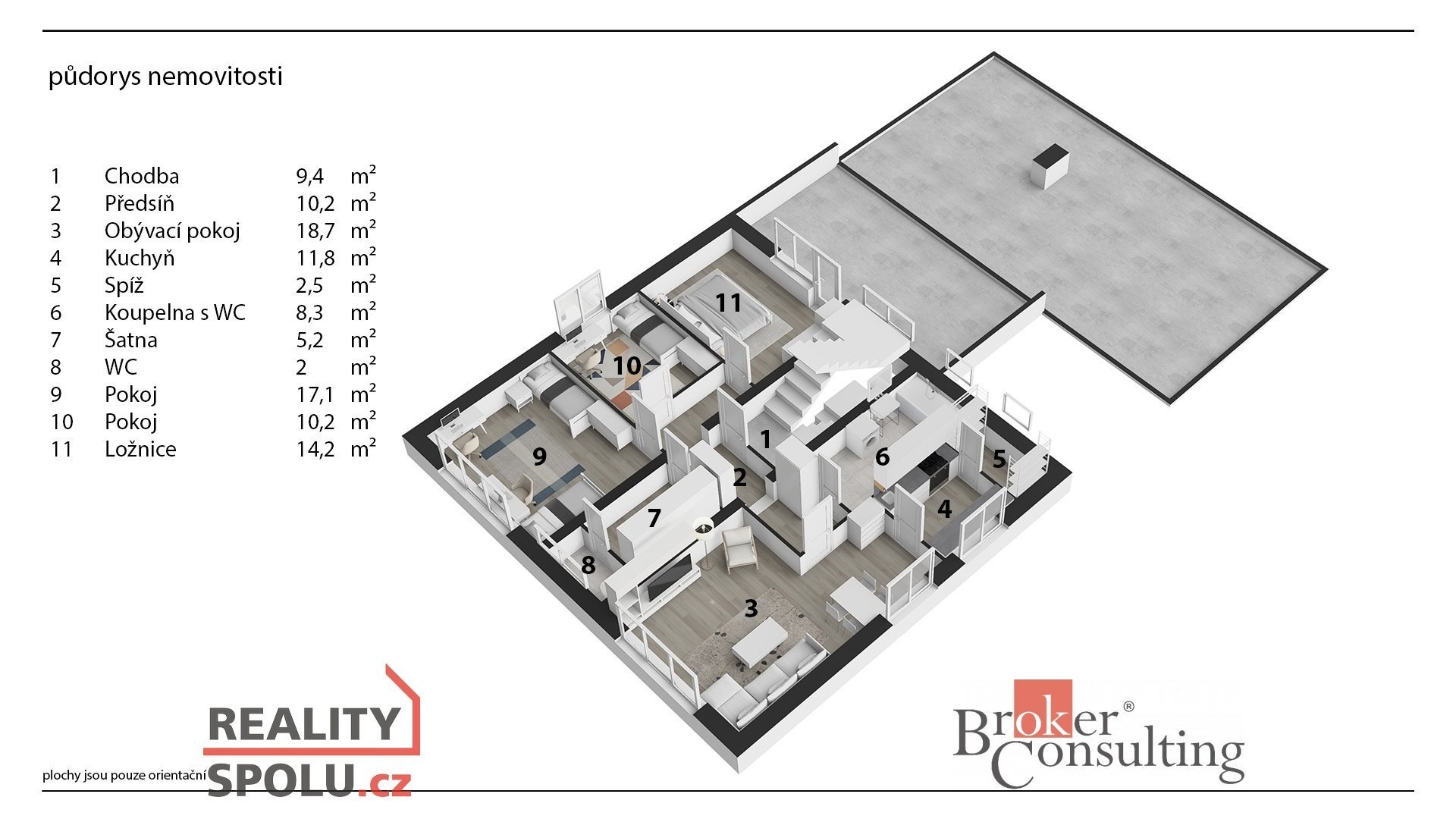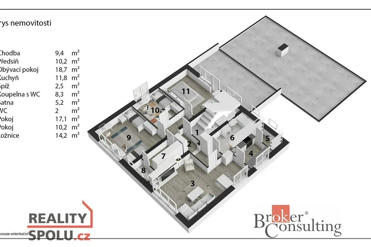 V 1. patře je situován prostorný byt 4+1 s terasou, který poskytuje dostatek soukromí i komfortu pro rodinné bydlení.