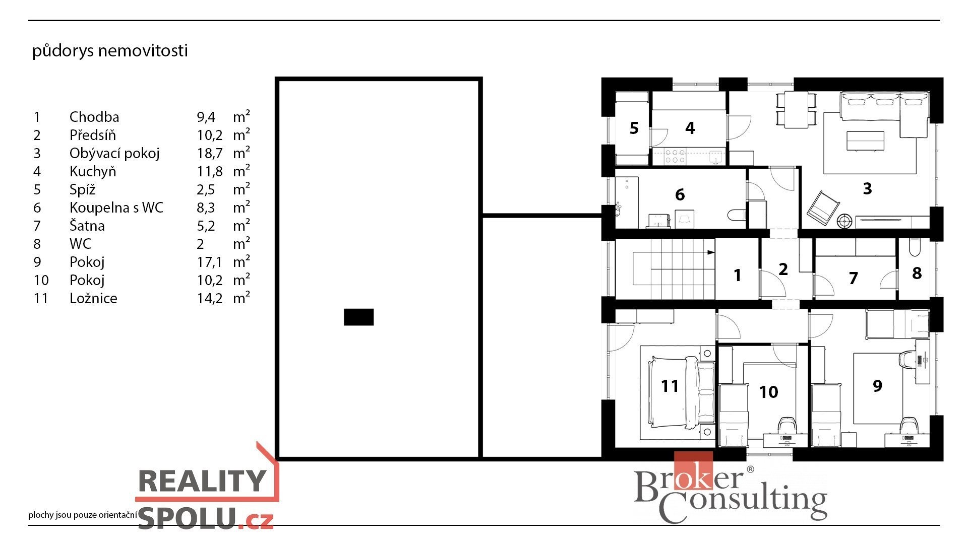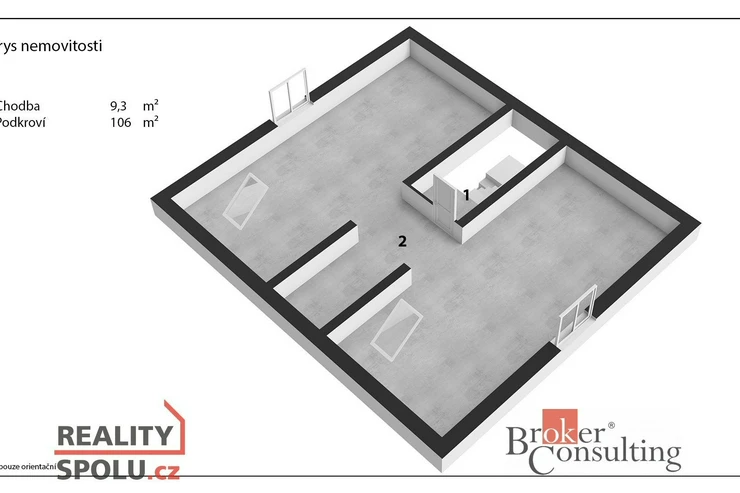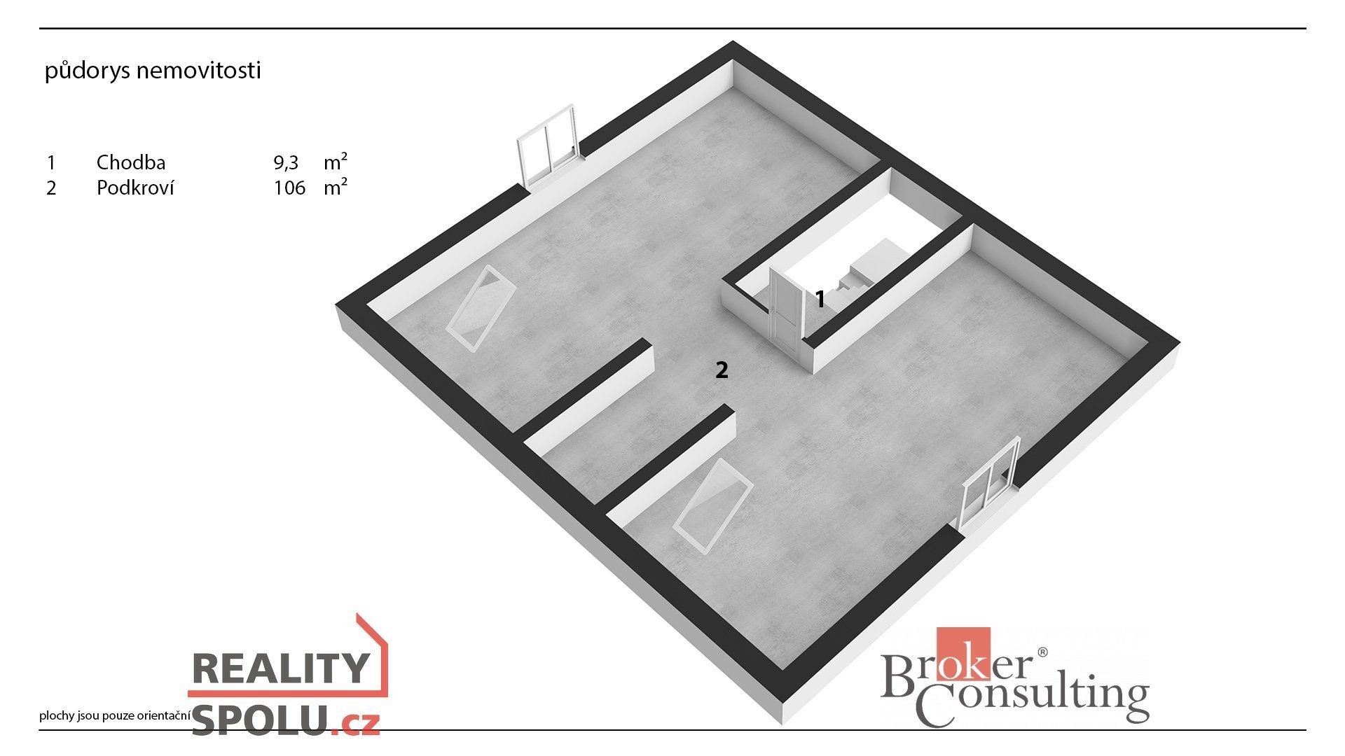 V podkroví se nachází byt 1+kk a další dva samostatné pokoje, což otevírá další možnosti využití.