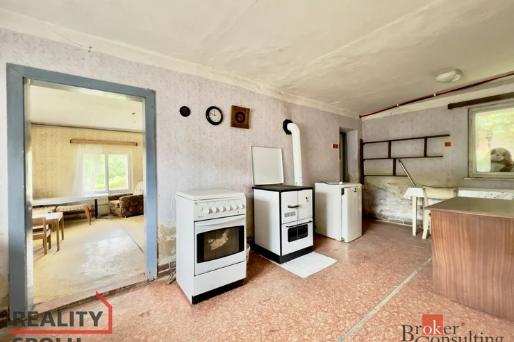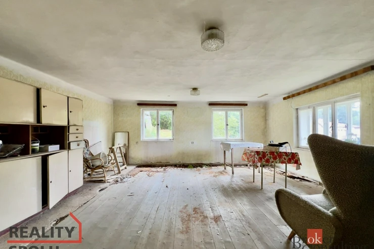 Fotografie odpovídají skutečnému stavu domu. Dům je ideální pro toho, kdo si ho bude chtít upravit podle svého.