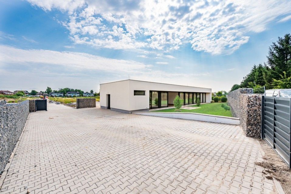 Sale of a newly built (2024) low-energy - passive (A - with photovoltaic panels) single-storey family house (203m2) - located on a flat, fenced plot with an entrance gate, in the village of Ptice, in a nice countryside on the outskirts of Prague. The village of Ptice is located in the Praha-západ district, Středočeský region, about 22 km west of the center of Prague and 5 km northwest of Rudná, near the Křivoklátsko i Český karst PLA. Perfectly accessible thanks to the nearby D5 and D6 motorways, it takes about 20 minutes to get to the airport. There is also an excellent connection with Prague by suburban buses that terminate at the Zličín metro station, the stop is located a short distance from the house.