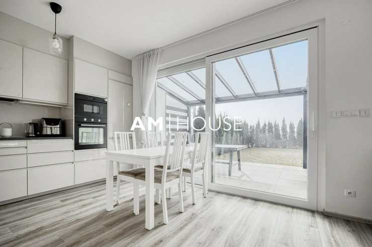 Dům nabízí komfortní rodinné bydlení s důrazem na moderní technologie, energetickou úspornost a praktické řešení prostoru. V přízemí se nachází prostorný obývací pokoj s kuchyňským koutem a přímým vstupem na zahradu, který tvoří přirozené centrum domu. Díky velkým oknům je interiér velmi světlý a příjemně propojený s venkovním prostorem. V patře jsou umístěny tři samostatné ložnice a koupelna, což poskytuje dostatek soukromí pro všechny členy domácnosti.