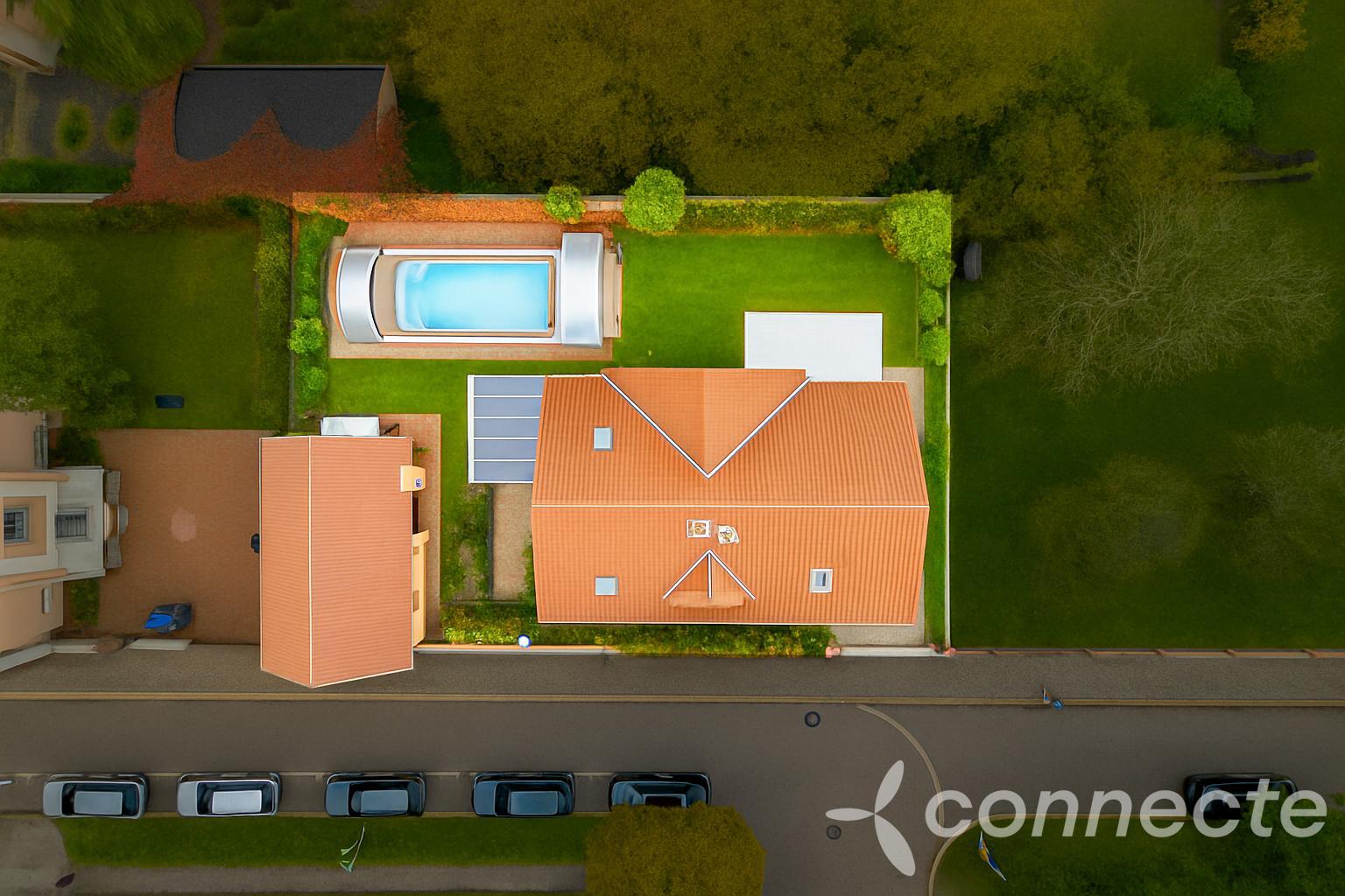 The garden, which is protected by high walls and mature greenery, provides complete privacy. As soon as the entrance gate closes behind you, you will find yourself in your own kingdom. There is enough space for various activities, a garden with raised flower pots for growing vegetables, an indoor swimming pool and two covered terraces with seating. In short, everything you need to spend your free time happily.