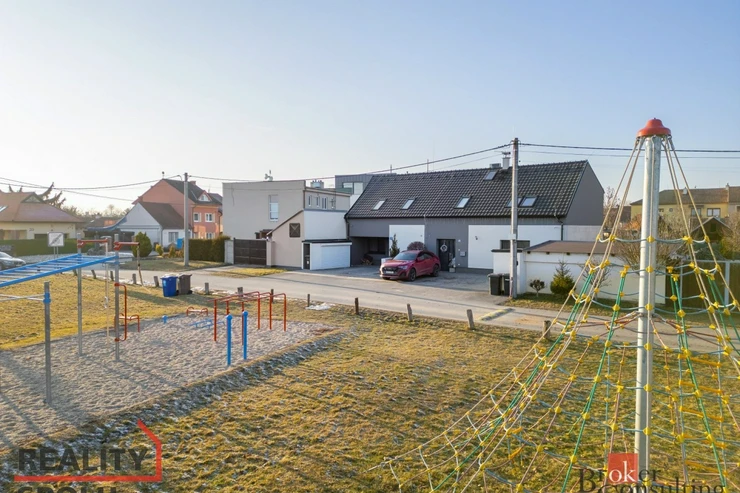 Velkou přidanou hodnotou je i okolí nemovitosti – přímo před domem se nachází dětské hřiště a workoutové hřiště, což podtrhuje rodinný a komunitní charakter celé lokality.