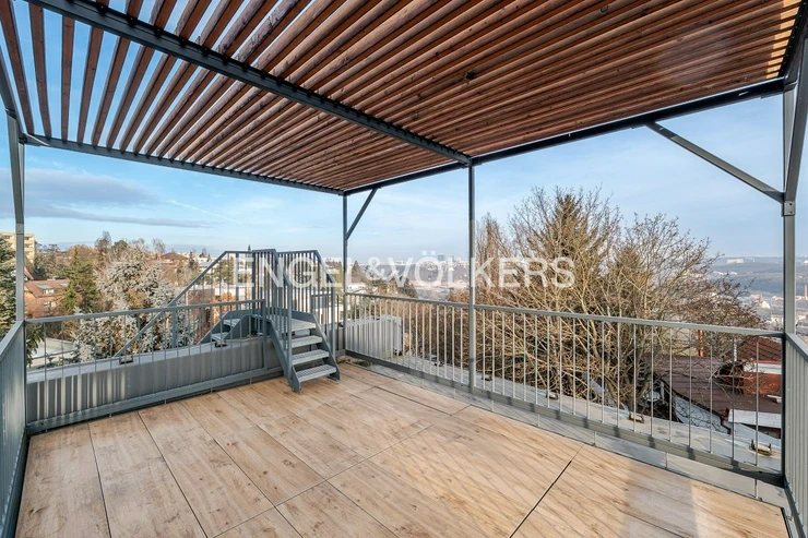 A distinctive feature of the house is the natural connection of the interior with the garden and several terraces on different floors, which extend the living space outdoors. Furthermore, the top floor offers a roof terrace with views of Prague, giving this place a completely different atmosphere. The garden provides plenty of privacy and space for daily life, relaxation, and social gatherings.