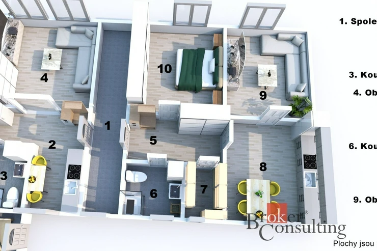 - 4+1 (108 m²) – prostorné bydlení pro majitele nebo další nájemce