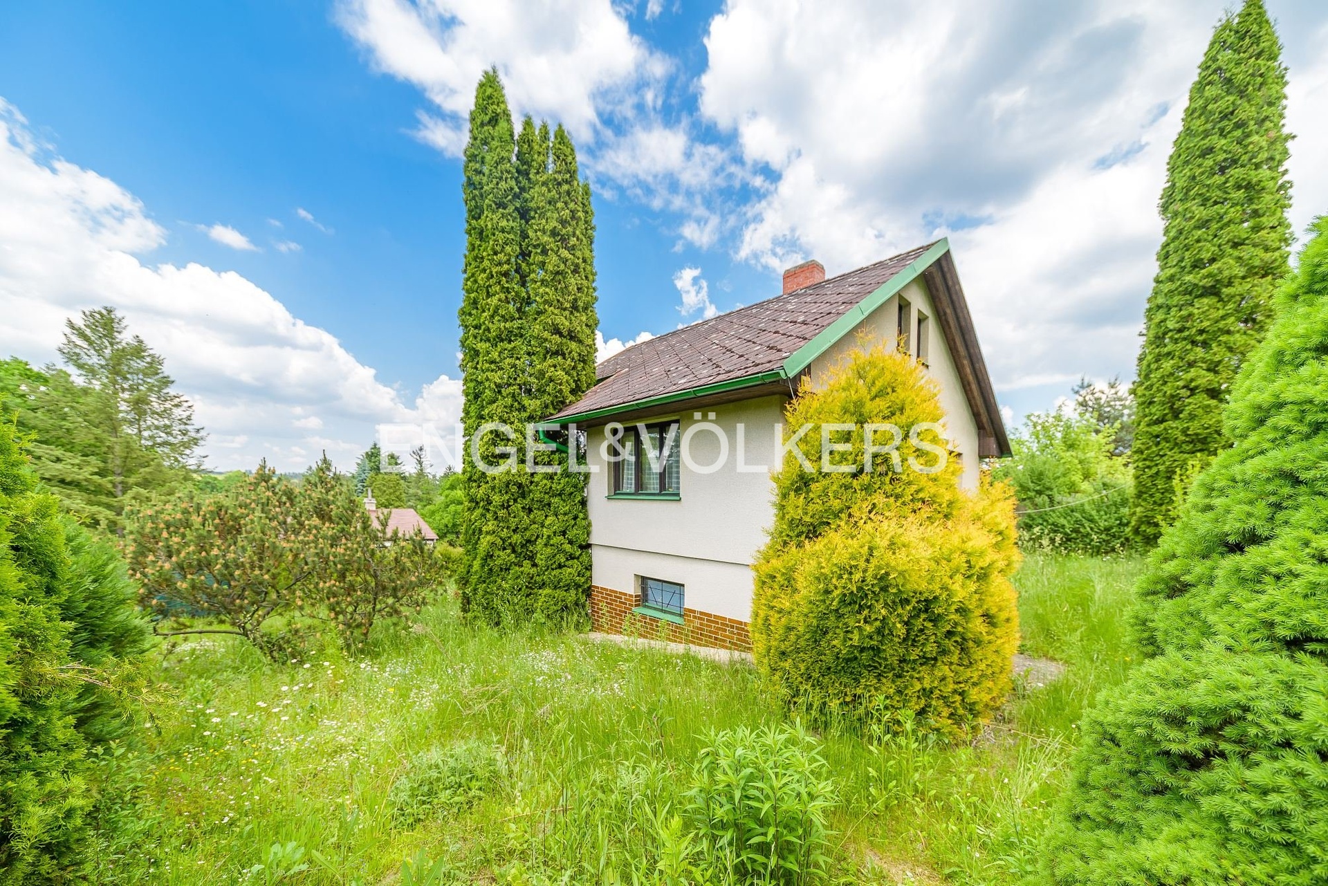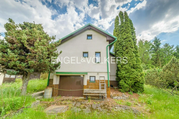 The cottage has a porch, a living room with a stove connected to a nice kitchen, a smaller bedroom, and a bathroom. On the semi-basement floor, there is another bedroom and a garage for a car, which can be easily converted into a nice and bright room with direct access to the garden. In the attic of the cottage, there is another room where a spacious bedroom can be built. The property offers the possibility of an extension to the already built-up area.