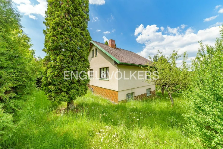 A wonderful opportunity for peaceful living in nature just outside Prague, weekend relaxation, or new construction according to your own needs. For sale is a 500 m² plot with a brick cottage in good condition, along with an additional 600 m² plot with a log cabin intended for demolition and subsequent construction. The neighbourhood offers the possibility of intergenerational living, but each in their own space.