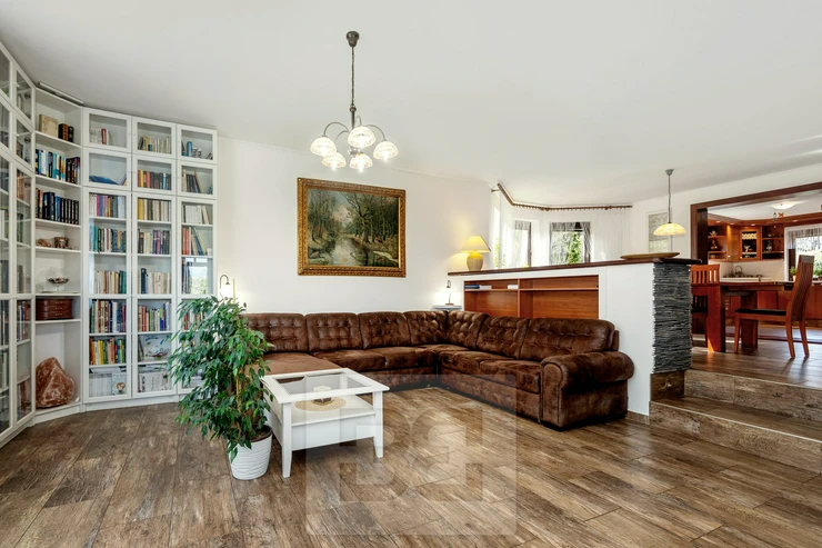 The house offers a 6+2 layout with a total floor area of 262 sqm and is situated on a rectangular, fenced plot of 2,154 sqm with a well-maintained ornamental garden.