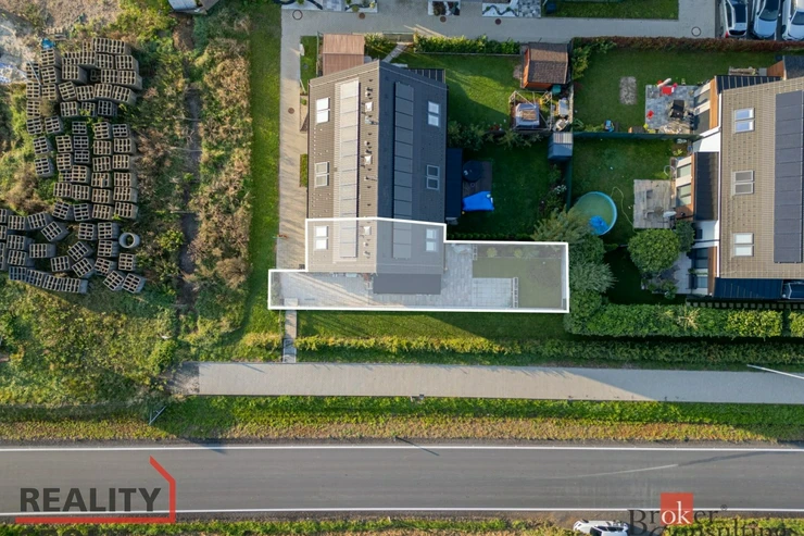 V blízkosti se nachází dětské hřiště, kavárna a další rodinné zázemí – ideální místo pro ty, kteří hledají soukromí, pohodlí a kvalitní bydlení v dojezdové vzdálenosti města.