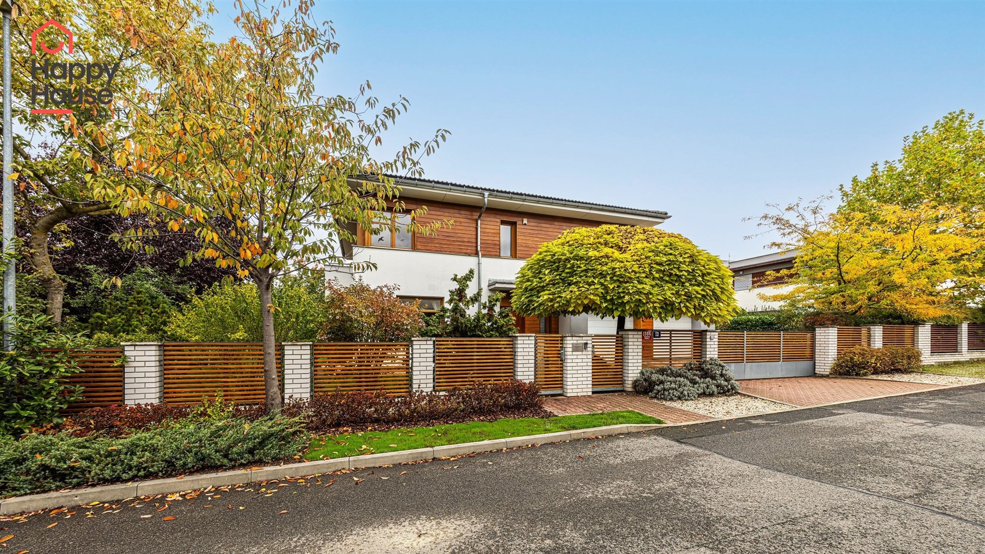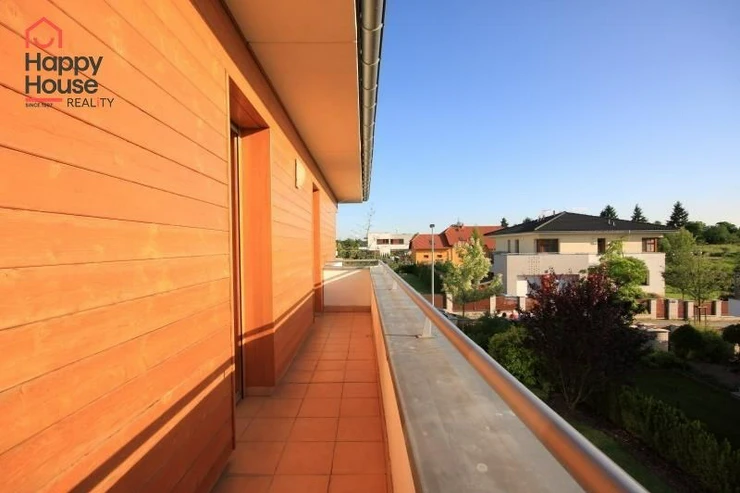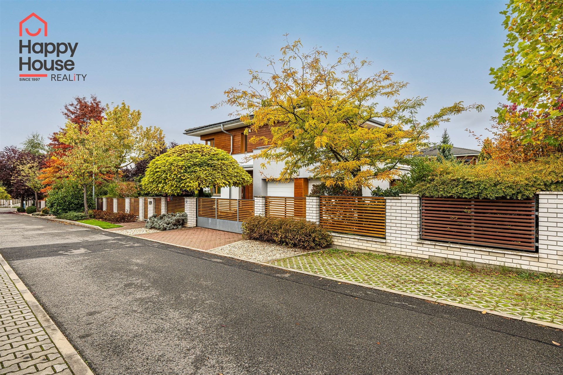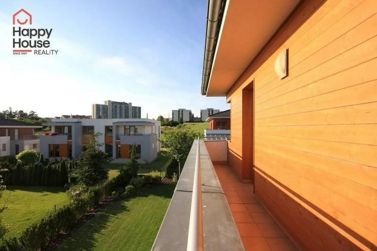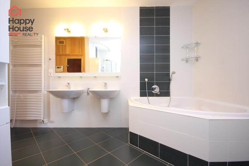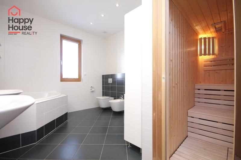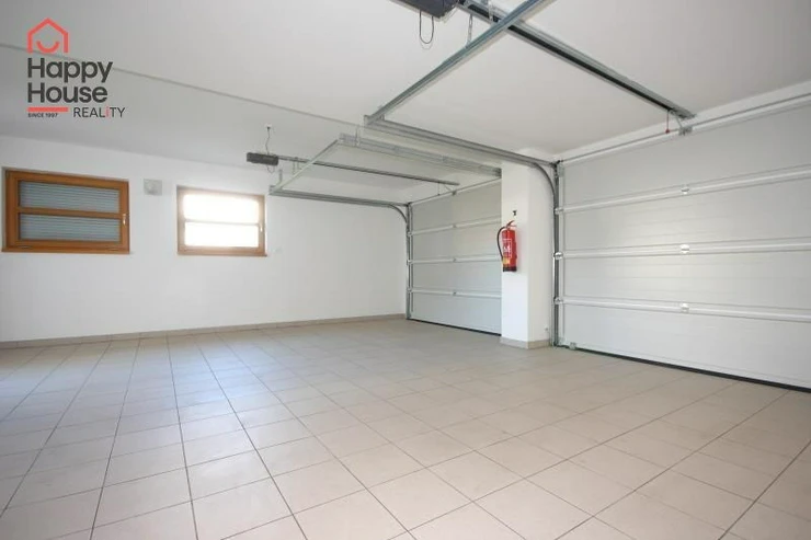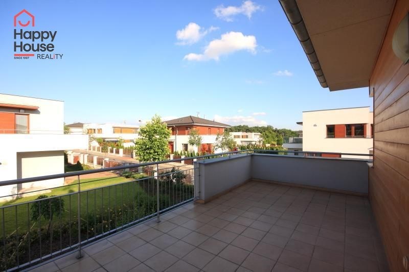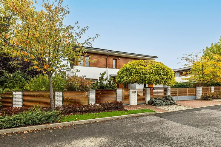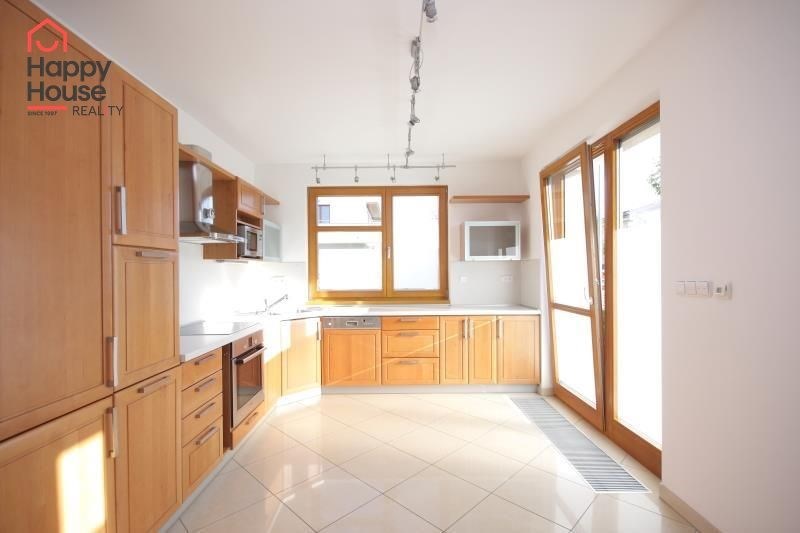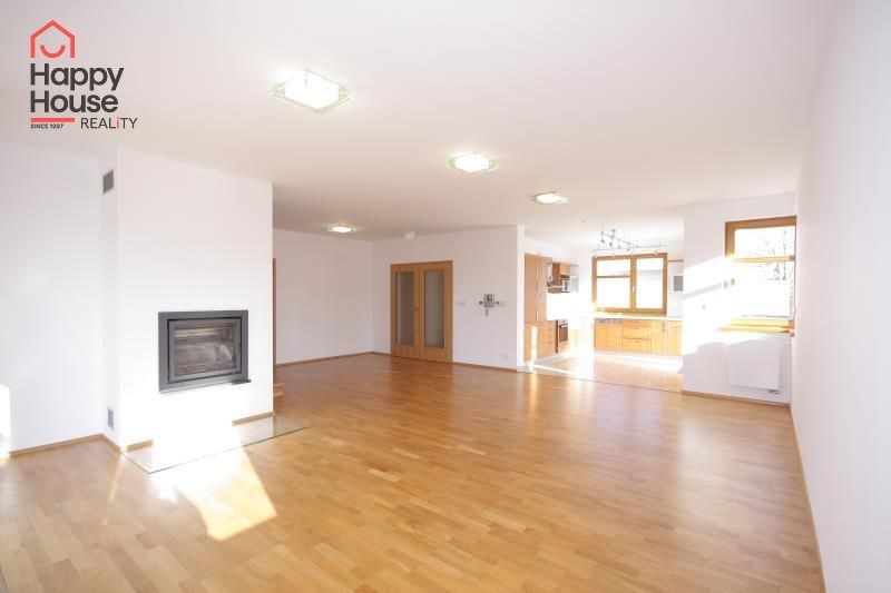 We exclusively offer for sale a beautiful, detached, five-bedroom family house with a layout 6+kítchenette located in Kunratice area, Prague 4, featuring a larger garden, three terraces, balcony, sauna and a fireplace. The total area of the house is 272,5 sqm, with one terrace (20 sqm) on the ground floor in front of the living room, the second terrace (7,4 sqm) in front of the kitchen, both made of exotic bangkirai wood, and the third terrace (24,8 sqm) on the first floor with paving facing southeast. There is also a balcony (7.2 sqm) on the 1st floor oriented to the west. The living floor area of the house is 197.4 sqm, of which the ground floor offers 94.3 sqm and the upper floor 103.1 sqm (excluding balcony, terrace, staircase and double garage). There is a spacious living room with a fireplace. The kitchen unit comes with built-in appliances. The property has 5 bedrooms in total - one on the ground floor and four on the first floor, 3 bathrooms, 1 separate toilet, an entrance hall, a hallway on the first floor, 2 storage rooms, and a utility room. A garage (39,8 sqm) for 2 cars is included. New wooden floors in the living room, all bedrooms, and the first-floor hallway with wooden floors as well, while other rooms have tiled floors. The main bathroom includes a Finnish sauna. The kitchen and bathrooms have heated floors. Satellite TV wiring is installed. There is a built-in wardrobe in the entrance hall. Another large built-in wardrobe in the master bedroom. The house is heated by a gas boiler and protected by a security alarm. Security blinds are installed on the windows. The beautifully maintained garden covers approximately 574 sqm and includes automatic irrigation system, a garden shed for tools, and garden furniture.