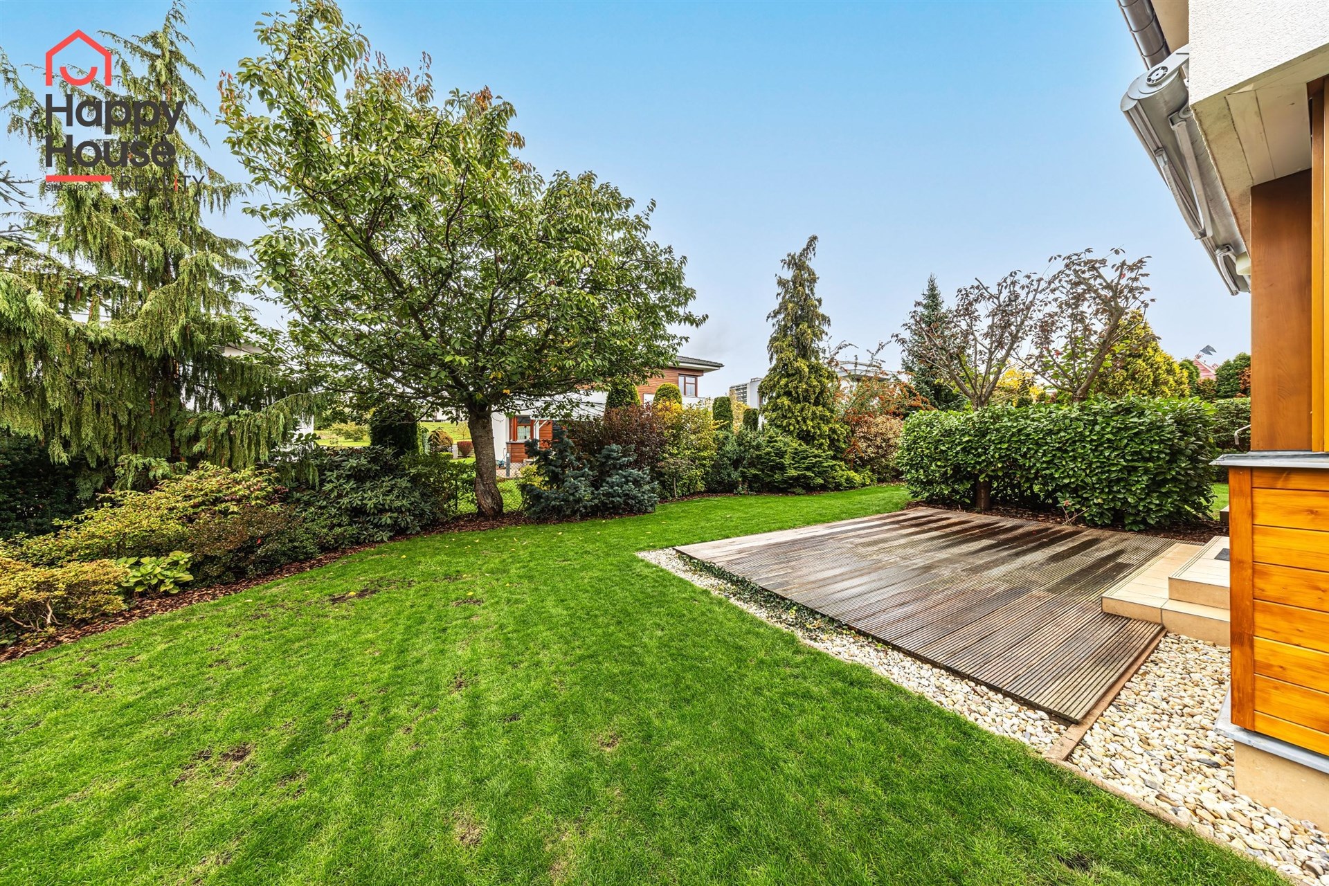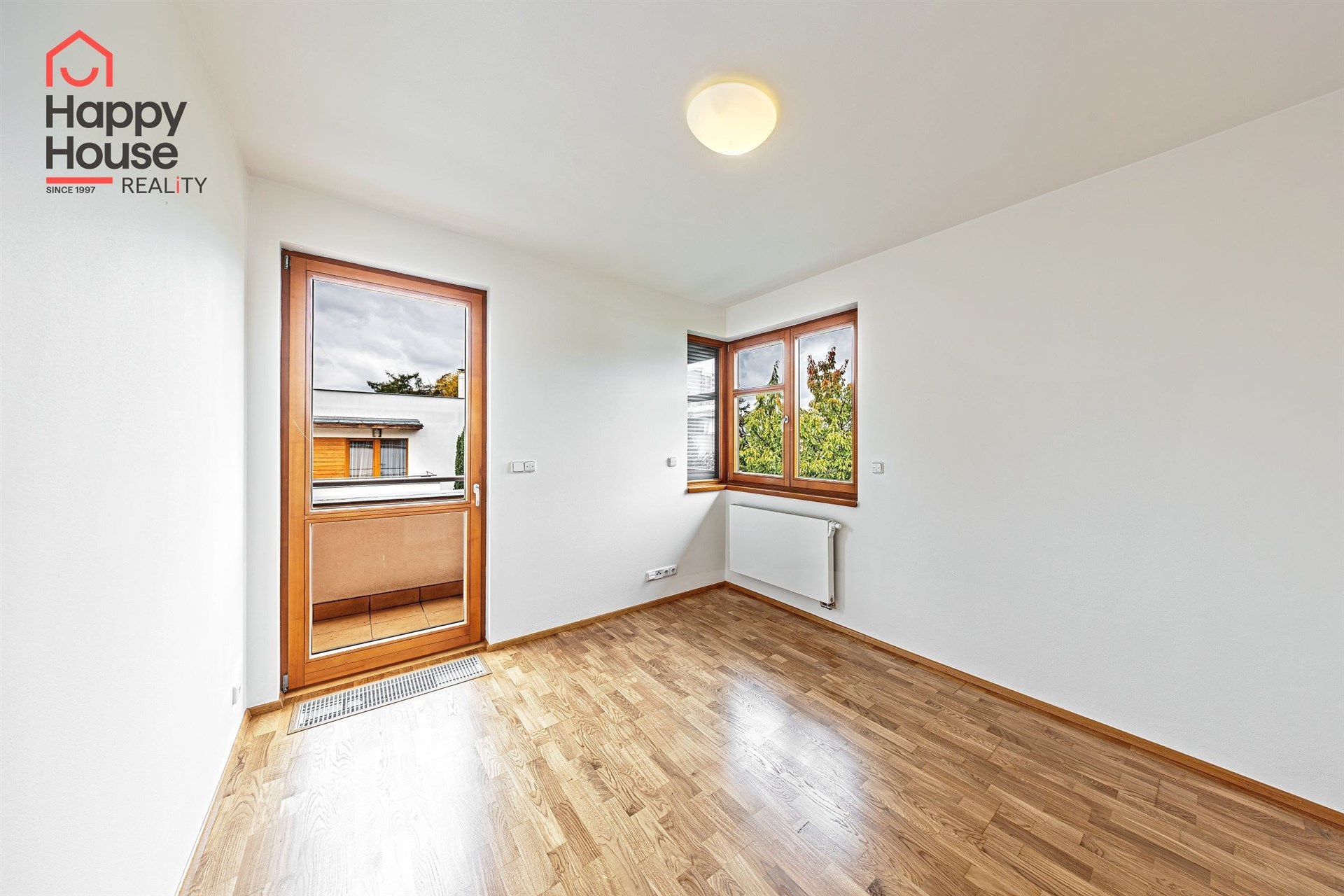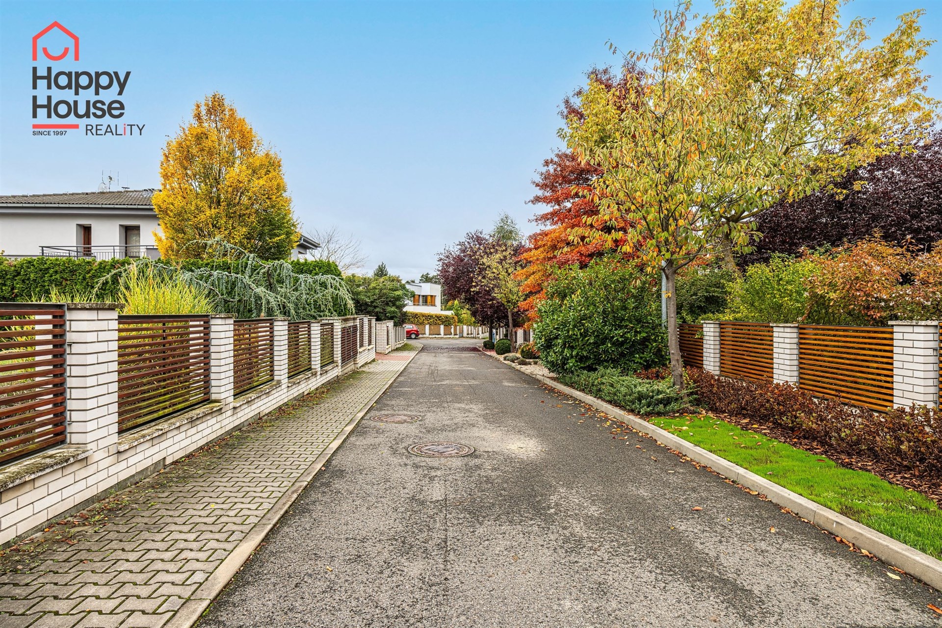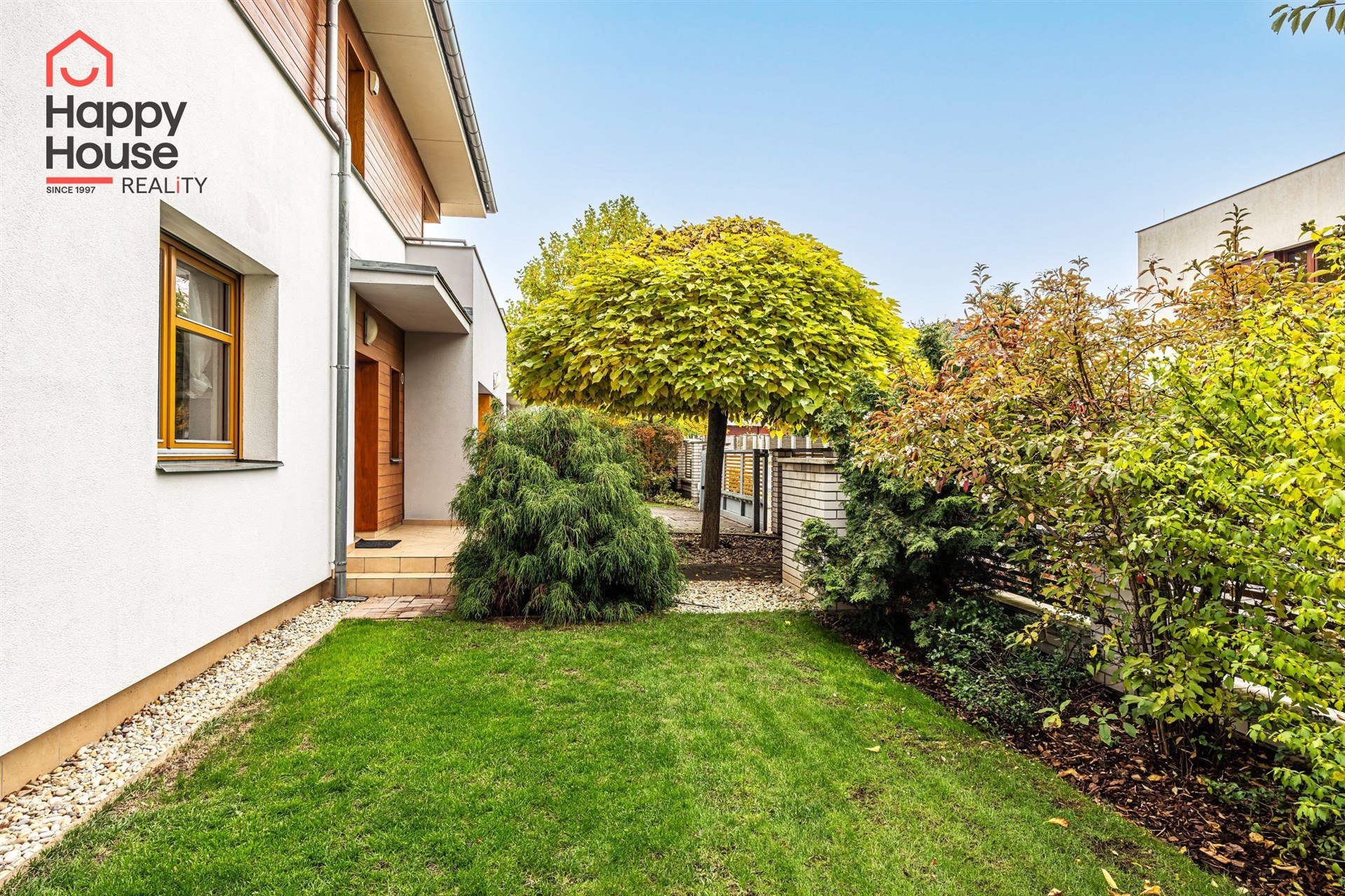 We exclusively offer for sale a beautiful, detached, five-bedroom family house with a layout 6+kítchenette located in Kunratice area, Prague 4, featuring a larger garden, three terraces, balcony, sauna and a fireplace. The total area of the house is 272,5 sqm, with one terrace (20 sqm) on the ground floor in front of the living room, the second terrace (7,4 sqm) in front of the kitchen, both made of exotic bangkirai wood, and the third terrace (24,8 sqm) on the first floor with paving facing southeast. There is also a balcony (7.2 sqm) on the 1st floor oriented to the west. The living floor area of the house is 197.4 sqm, of which the ground floor offers 94.3 sqm and the upper floor 103.1 sqm (excluding balcony, terrace, staircase and double garage). There is a spacious living room with a fireplace. The kitchen unit comes with built-in appliances. The property has 5 bedrooms in total - one on the ground floor and four on the first floor, 3 bathrooms, 1 separate toilet, an entrance hall, a hallway on the first floor, 2 storage rooms, and a utility room. A garage (39,8 sqm) for 2 cars is included. New wooden floors in the living room, all bedrooms, and the first-floor hallway with wooden floors as well, while other rooms have tiled floors. The main bathroom includes a Finnish sauna. The kitchen and bathrooms have heated floors. Satellite TV wiring is installed. There is a built-in wardrobe in the entrance hall. Another large built-in wardrobe in the master bedroom. The house is heated by a gas boiler and protected by a security alarm. Security blinds are installed on the windows. The beautifully maintained garden covers approximately 574 sqm and includes automatic irrigation system, a garden shed for tools, and garden furniture.