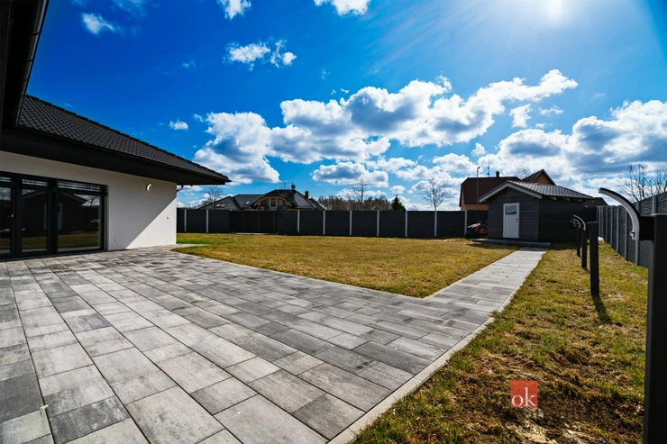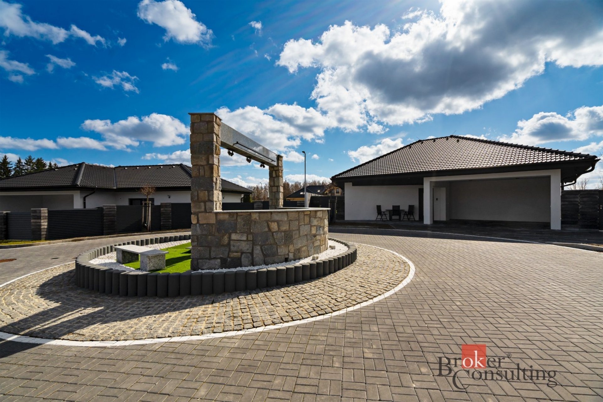• Vjezd na zahradu: Dálkově ovládaná posuvná vstupní brána.