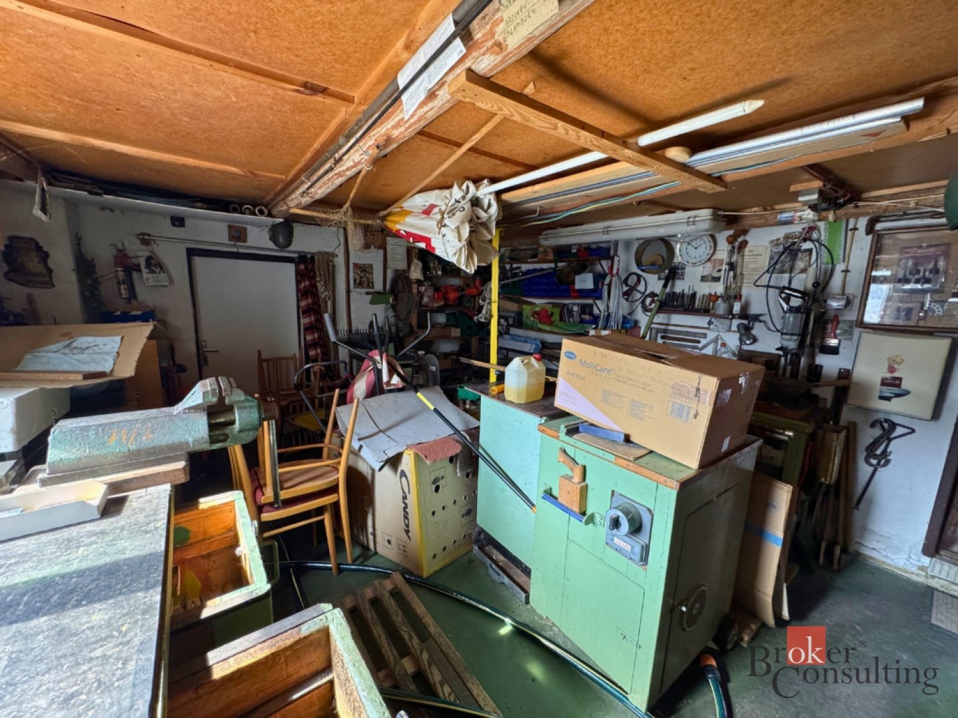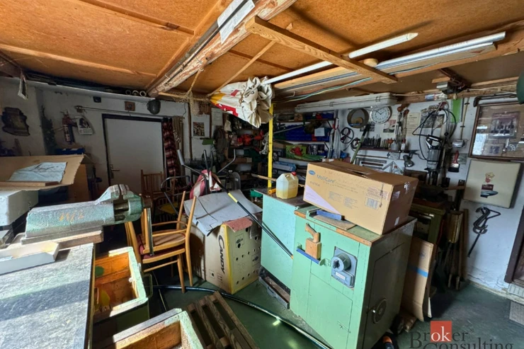 Na pozemku se nachází garáž s dílnou o velikosti 50 m², která poskytuje dostatek prostoru nejen pro parkování vozidla, ale také pro kutily nebo jako praktické úložné prostory.