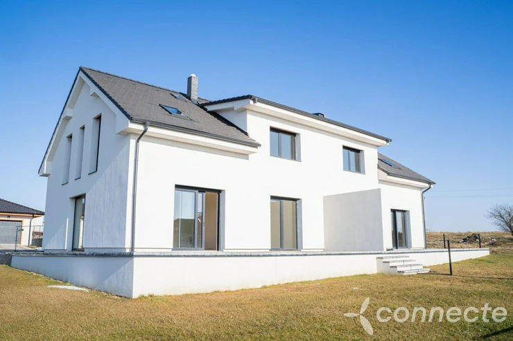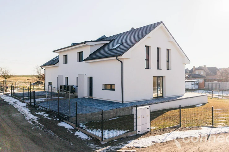 We offer for sale a modern newly built family house with a 5-room layout and kitchenette, situated in a quiet cul-de-sac in the village of Klenovice u Soběslavi. The house forms part of a semi-detached property and was built for the owners own family, with an emphasis on high-quality workmanship, a well-thought-out design and maximum privacy. The location combines the tranquillity of rural living with excellent accessibility, including quick access to the D3 motorway, train and bus connections towards Prague, Tábor and České Budějovice, and complete civic amenities in nearby Soběslav.