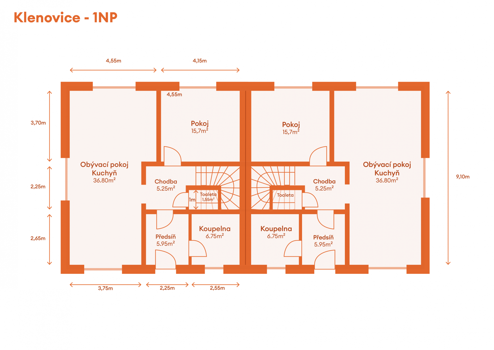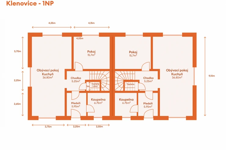 We offer for sale two modern family houses (a semi-detached property) located in a quiet cul-de-sac in the village of Klenovice u Soběslavi. These are new builds developed by a family-owned construction company, originally intended for owner occupation, with an emphasis on high-quality workmanship, well-designed layouts and long-term property value. The sale is possible only as a whole, making this an attractive opportunity not only for multi-generational living but also for investment purposes.
