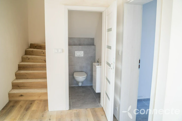 The buildings are constructed using brickwork on concrete foundations, with roofs covered by German-made concrete tiles. They are fitted with plastic triple-glazed windows, and the floors combine tiles and vinyl flooring. Heating is provided by heat pumps in combination with electricity, with both underfloor heating and radiators installed. The houses are prepared for a fireplace or wood-burning stove, photovoltaic panels, internet connection, a security system and smart home technology. Utilities include mains water supply, sewerage and electricity.