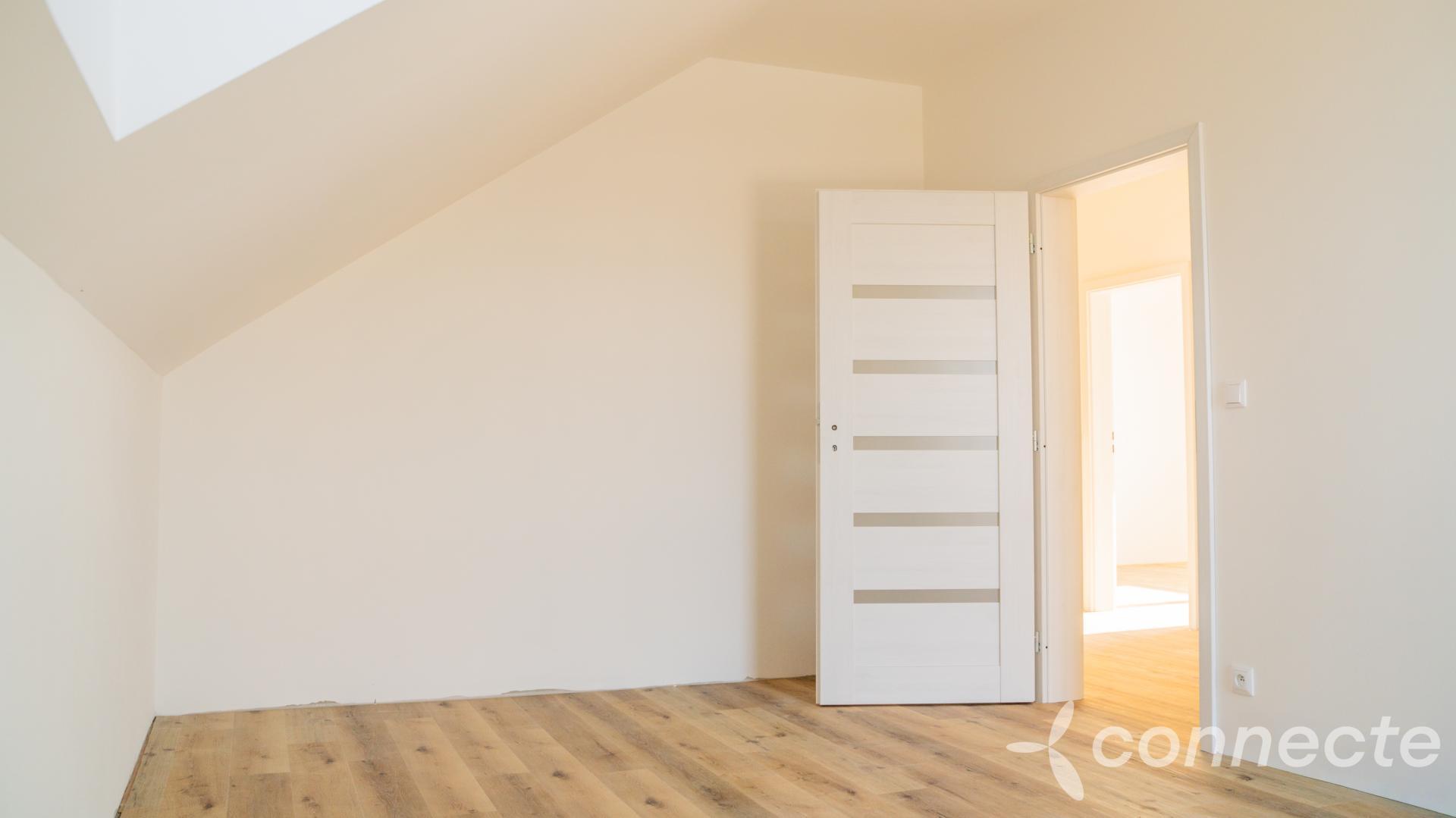 Both houses have an identical 5-room layout with a kitchenette and a total usable area of approximately 143 m2 each, arranged over the ground floor and a habitable attic. Each house stands on its own plot, measuring approximately 418 m2 and 559 m2 respectively. Both plots are fenced, landscaped with lawn and oriented to the east, south and west. Each house includes two outdoor parking spaces. The positioning of the houses ensures a high level of privacy and tranquillity, with no direct neighbours and no through traffic.