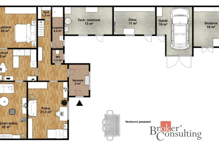 - Garáž, dílna, stolárna, hospodářské zázemí